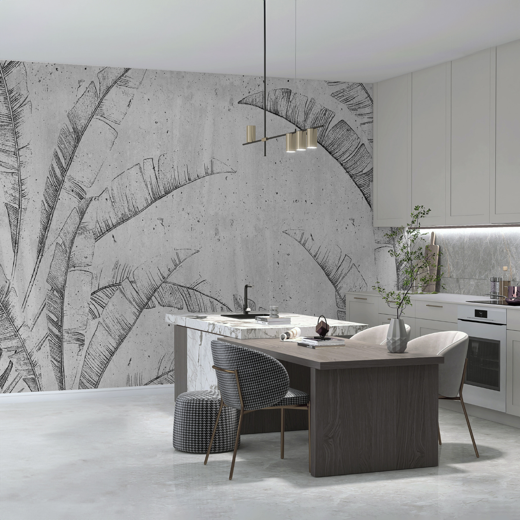 Stellen Sie sich das an Ihrer Wand vor – “Tropisches Blattmuster auf Beton”. Eine Fototapete, die sowohl urbanen Schick als auch eine kleine Dschungel-Oase ausstrahlt. Es ist perfekt, wenn Sie einem Raum ein luftiges und doch bodenständiges Gefühl verleihen wollen. Stellen Sie sich vor, Sie nippen an Ihrem Morgenkaffee, sehen das Lichtspiel auf den Palmenblättern und spüren diese kühle Betonatmosphäre. Es ist wie eine kleine exotische Flucht, für die man kein Flugticket braucht. Man erwartet fast, dass man die tropischen Vögel hört, oder? Dieses Wandbild ist ein entspannter Hingucker, ideal für alle, die diese Mischung aus Natur und modernem Stil lieben.