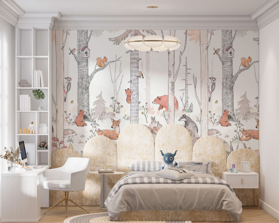 Stellen Sie sich einen gemütlichen Wald direkt in Ihrem Kinderzimmer vor – genau das bringt dieses Wandbild! Die “Tiergruppe im Wald” ist, als würde man ein Märchenbuch direkt an der Wand aufschlagen. Es ist gefüllt mit entzückenden Waldtieren: neugierige Eichhörnchen, hüpfende Häschen, faule Bären und sogar ein nachdenkliches Reh, das deinen Blick fängt. Die sanften, erdigen Farben verleihen dem Bild eine ruhige und magische Atmosphäre. Ein Ort, von dem man als Kind träumte, um ihn zu erkunden. Kinder? Sie werden ihn lieben. Und selbst Erwachsene könnten in seinem Charme ein wenig Frieden und Laune finden. Stellen Sie sich Gutenachtgeschichten mit dieser Kulisse vor – ein Abenteuer! Es ist nicht nur ein Wandbild, es ist eine ganz neue Welt, in der man sich verlieren kann. Perfekt für Kinderzimmer, Spielzimmer oder überall dort, wo Sie einen Hauch von Waldzauber brauchen. Schaffen Sie Erinnerungen und regen Sie die Fantasie an – direkt an Ihrer Wand!