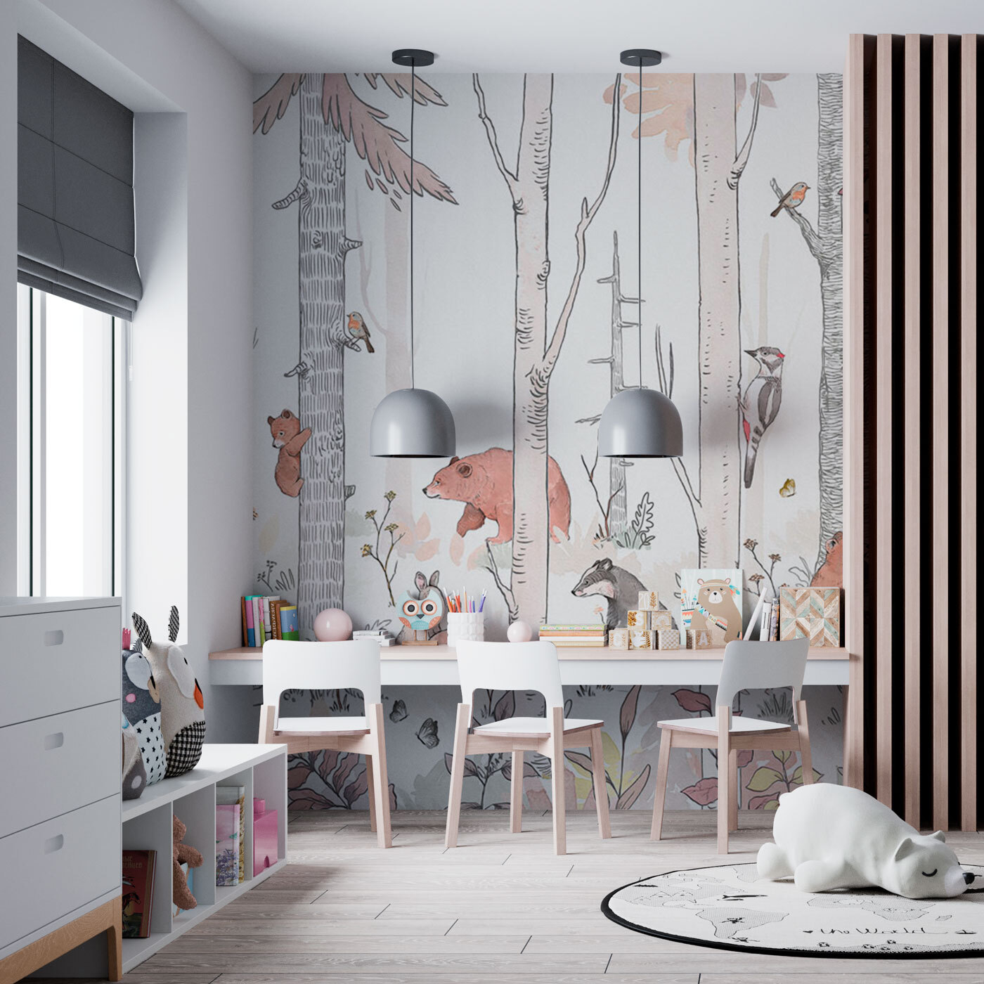 Stellen Sie sich einen gemütlichen Wald direkt in Ihrem Kinderzimmer vor – genau das bringt dieses Wandbild! Die “Tiergruppe im Wald” ist, als würde man ein Märchenbuch direkt an der Wand aufschlagen. Es ist gefüllt mit entzückenden Waldtieren: neugierige Eichhörnchen, hüpfende Häschen, faule Bären und sogar ein nachdenkliches Reh, das deinen Blick fängt. Die sanften, erdigen Farben verleihen dem Bild eine ruhige und magische Atmosphäre. Ein Ort, von dem man als Kind träumte, um ihn zu erkunden. Kinder? Sie werden ihn lieben. Und selbst Erwachsene könnten in seinem Charme ein wenig Frieden und Laune finden. Stellen Sie sich Gutenachtgeschichten mit dieser Kulisse vor – ein Abenteuer! Es ist nicht nur ein Wandbild, es ist eine ganz neue Welt, in der man sich verlieren kann. Perfekt für Kinderzimmer, Spielzimmer oder überall dort, wo Sie einen Hauch von Waldzauber brauchen. Schaffen Sie Erinnerungen und regen Sie die Fantasie an – direkt an Ihrer Wand!