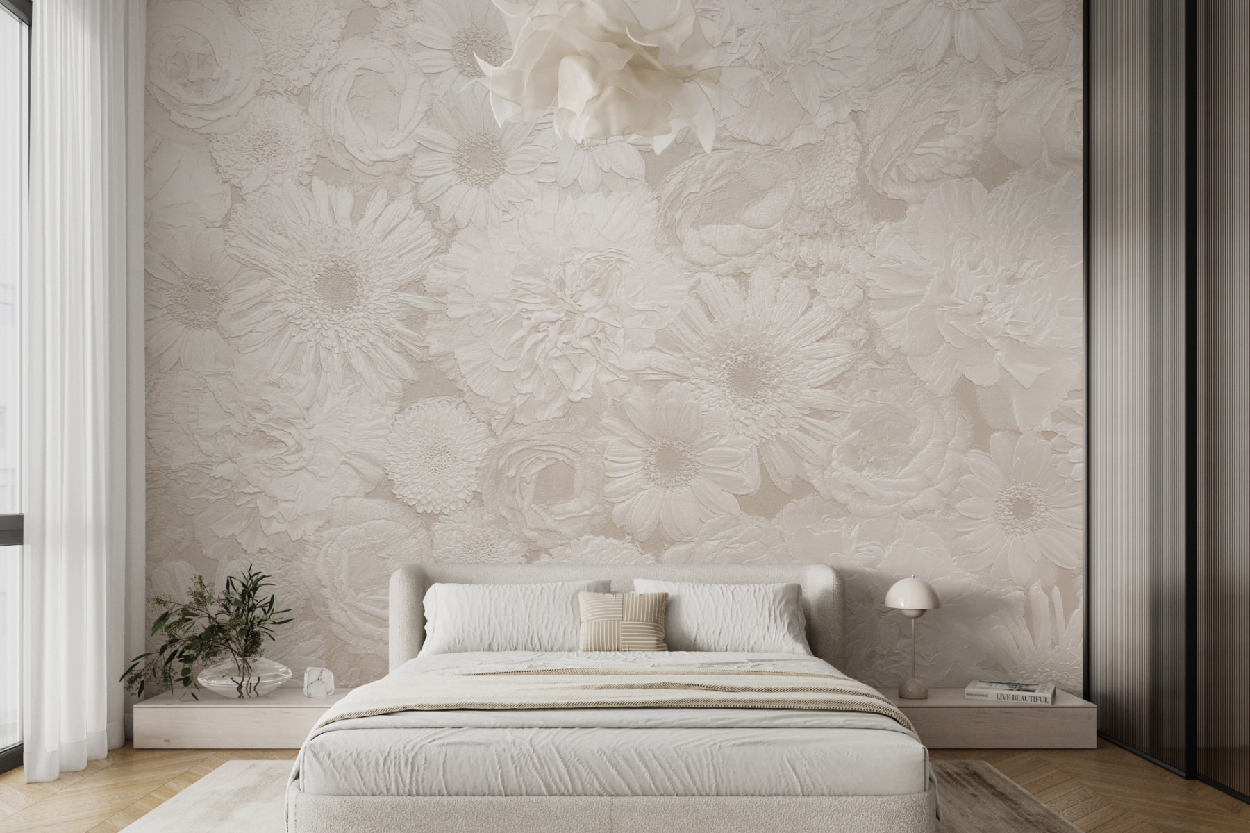 Wollten Sie schon immer einen Hauch von Eleganz mit einem gewissen Etwas an Ihre Wände bringen? Dieses Wandbild “White Floral Pattern” könnte genau das Richtige sein. Es hat diese zarte, fast flüsternde Textur, die Sie in den Bann zieht. Stellen Sie sich vor, Sie wachen jeden Morgen in einem blühenden Garten auf, direkt in Ihrem Wohn- oder Schlafzimmer. Die sanften, weißen Töne verleihen dem Raum eine gemütliche, ruhige Atmosphäre – perfekt zum Entspannen nach einem langen Tag.
