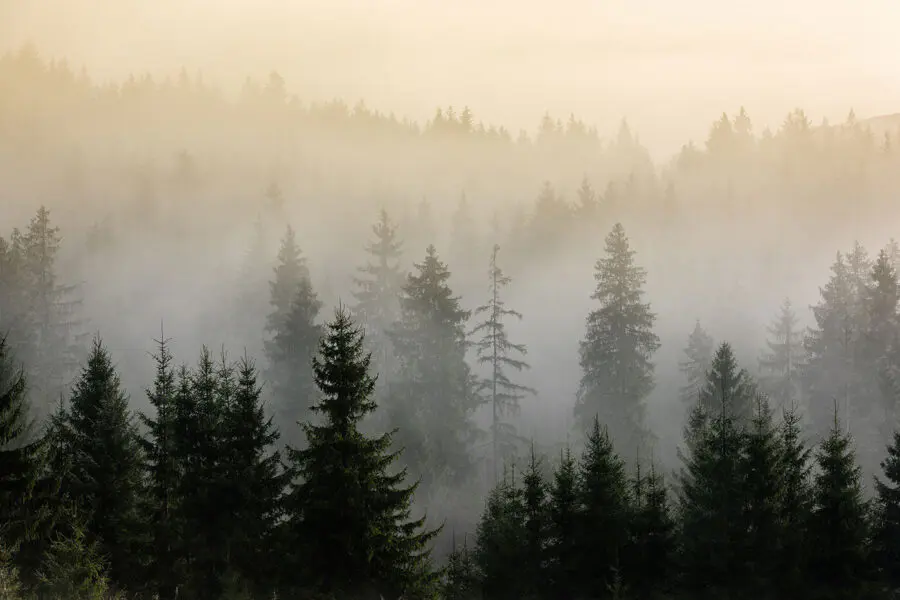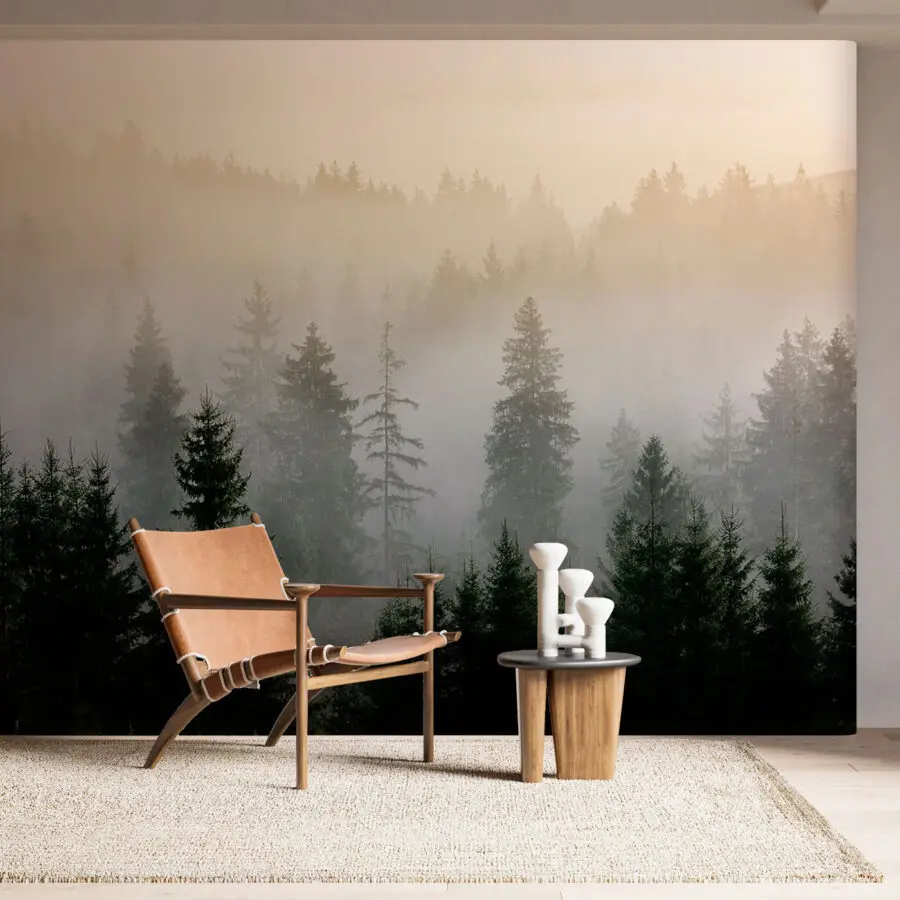 Treten Sie ein in eine verträumte Welt mit dieser atemberaubenden Fototapete mit Bäumen im Nebel. Stellen Sie sich vor, wie Sie in einer gemütlichen Ecke einen Kaffee trinken, während der sanfte Nebel Ihren Raum umhüllt und alles ruhig und friedlich erscheinen lässt. Es ist, als ob Sie sich ein Stück Wald in Ihr Zuhause holen würden. Die grünen und grauen Schichten tanzen miteinander und schaffen ein Gefühl der Ruhe, das die Geheimnisse der Natur verrät.