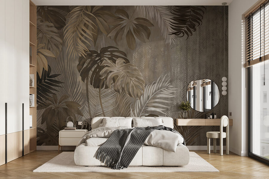 Verwandeln Sie eine triste Wand in ein tropisches Paradies mit dieser Fototapete mit eleganten Blättern auf einem wunderschönen, abwechslungsreichen Hintergrund. Stellen Sie sich vor, Sie betreten ein gemütliches Zimmer und haben das Gefühl, direkt in einen üppigen Dschungel zu gelangen – natürlich ohne Moskitos. Die erdigen Töne verbreiten eine ruhige Stimmung und hüllen Sie in eine warme Umarmung. Perfekt für alle, die sich nach der Natur sehnen, aber weit weg von ihr leben. Freunde könnten Sie fragen, ob Sie im Regenwald Urlaub gemacht haben! Es ist mehr als nur Kunst; es ist eine tägliche Flucht, eine Möglichkeit, ein Stück Natur in sich aufzunehmen, ohne das Haus zu verlassen.