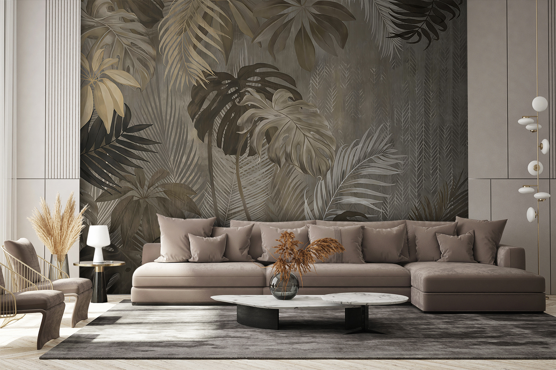 Verwandeln Sie eine triste Wand in ein tropisches Paradies mit dieser Fototapete mit eleganten Blättern auf einem wunderschönen, abwechslungsreichen Hintergrund. Stellen Sie sich vor, Sie betreten ein gemütliches Zimmer und haben das Gefühl, direkt in einen üppigen Dschungel zu gelangen – natürlich ohne Moskitos. Die erdigen Töne verbreiten eine ruhige Stimmung und hüllen Sie in eine warme Umarmung. Perfekt für alle, die sich nach der Natur sehnen, aber weit weg von ihr leben. Freunde könnten Sie fragen, ob Sie im Regenwald Urlaub gemacht haben! Es ist mehr als nur Kunst; es ist eine tägliche Flucht, eine Möglichkeit, ein Stück Natur in sich aufzunehmen, ohne das Haus zu verlassen.
