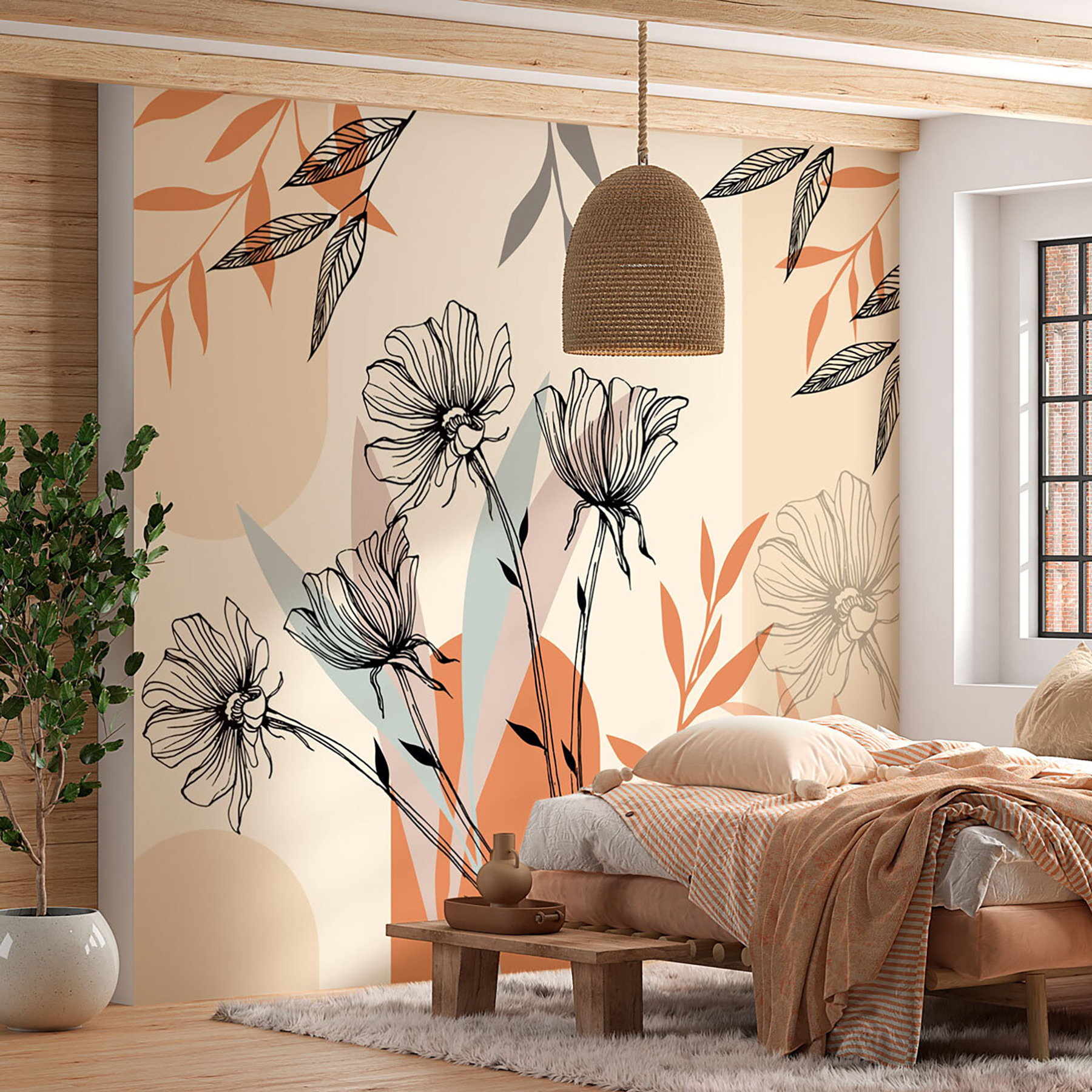 Stellen Sie sich vor, Sie betreten einen Raum und werden von dieser atemberaubenden Fototapete “Schwarz-weiße Zeichnung einer Blume” begrüßt. Perfekt für alle, die Designer-Tapeten und beliebte Wandbilder lieben. Es hat diese mühelos schicke Ausstrahlung. Zarte schwarz-weiße Blumen tanzen über eine Leinwand in sanften Farbtönen und verleihen Ihrem Raum Eleganz, ohne ihn zu überwältigen.
