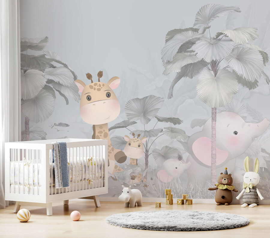 Stellen Sie sich vor, Sie betreten das Zimmer Ihres Kindes und werden von einer bezaubernden Giraffe und einem liebenswerten Elefanten begrüßt, die in einem nebligen Wald herumhängen. Die Fototapete “Giraffe und Elefant im Wald” ist wie ein lebendig gewordenes Märchenbuch. Es ist nicht nur ein hübsches Bild – es verwandelt den ganzen Raum in einen verträumten, magischen Ort. Mit seinen sanften Pastellfarben und den süßen Tieren, die mit großen Augen hinter den riesigen Blättern hervorlugen, hat es fast etwas Märchenhaftes. Es ist perfekt, um die Fantasie Ihres Kindes anzuregen und ihm einen Hauch von Naturwunder zu verleihen. Egal, ob es für einen Sohn oder eine Tochter ist, jedes Kind wird sich beim Betreten wie in einem gemütlichen, zauberhaften Dschungel fühlen. Stellen Sie sich vor, wie Sie sie abends zudecken, während diese freundlichen Gesichter über sie wachen. Außerdem ist es ein toller Gesprächsanlass – vielleicht denken Sie sich sogar Gute-Nacht-Geschichten über diese Waldfreunde aus.