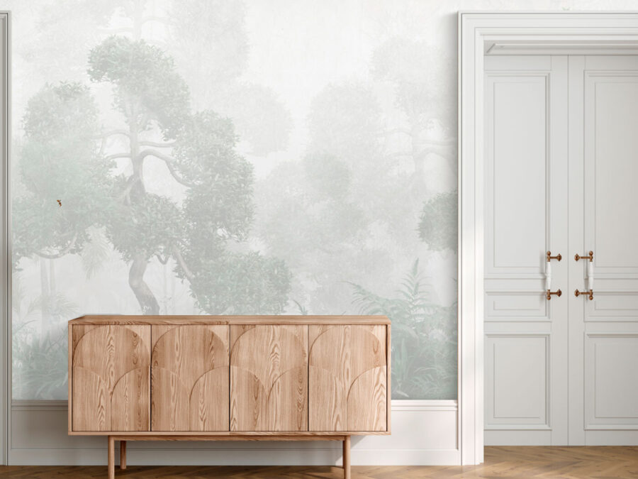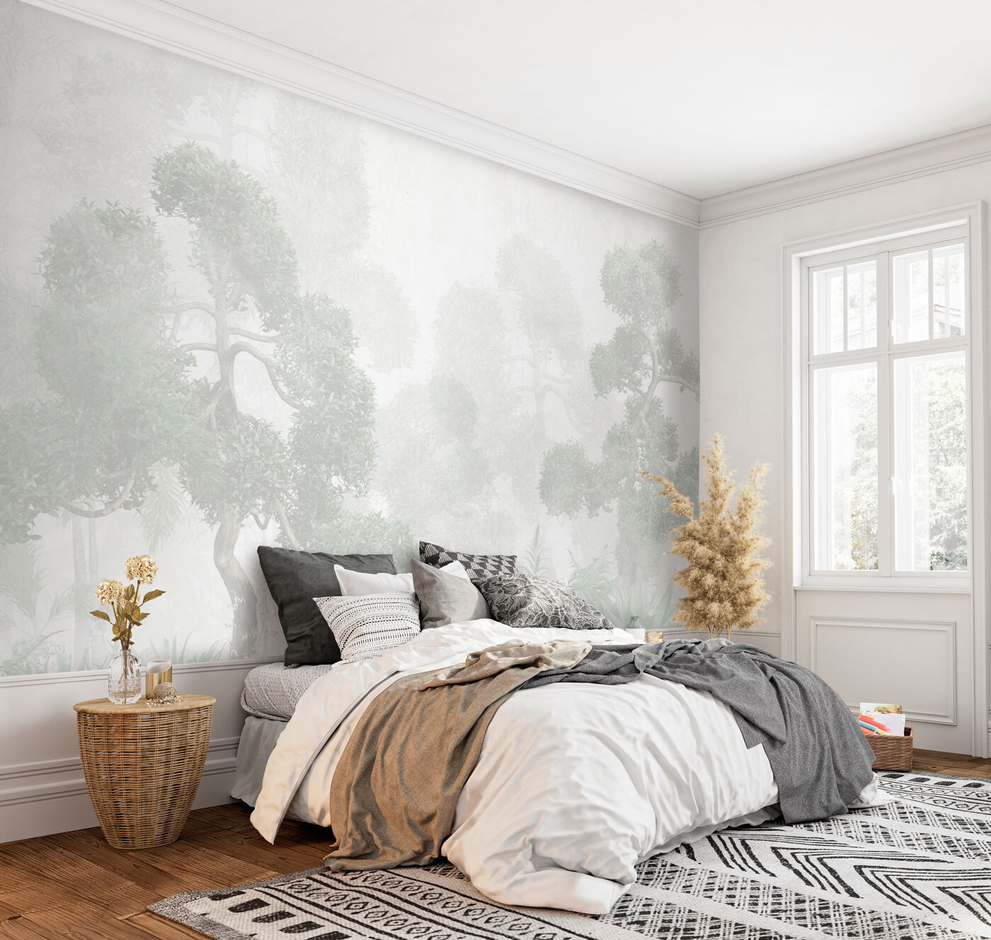 Verwandeln Sie Ihren Raum in einen ruhigen Rückzugsort mit dieser Fototapete, die einen nebligen Wald, Pflanzen und Farne zeigt. Stellen Sie sich vor, wie Sie durch einen sanften Dunst wandern und die erdigen Düfte der Natur die Luft erfüllen. Es ist die perfekte Kulisse für gemütliche Gespräche bei einem Kaffee oder ein friedlicher Rückzugsort, um das Buch zu lesen, in das Sie schon lange eintauchen wollten. Dieses Wandbild ist ideal für jeden Raum, der sich nach einem Hauch von Ruhe sehnt, und schafft eine beruhigende Umgebung, die sich von der Zeit unberührt anfühlt. Kombinieren Sie es mit einer sanften Beleuchtung und einem bequemen Sessel, und schon haben Sie Ihren eigenen Rückzugsort zu Hause.