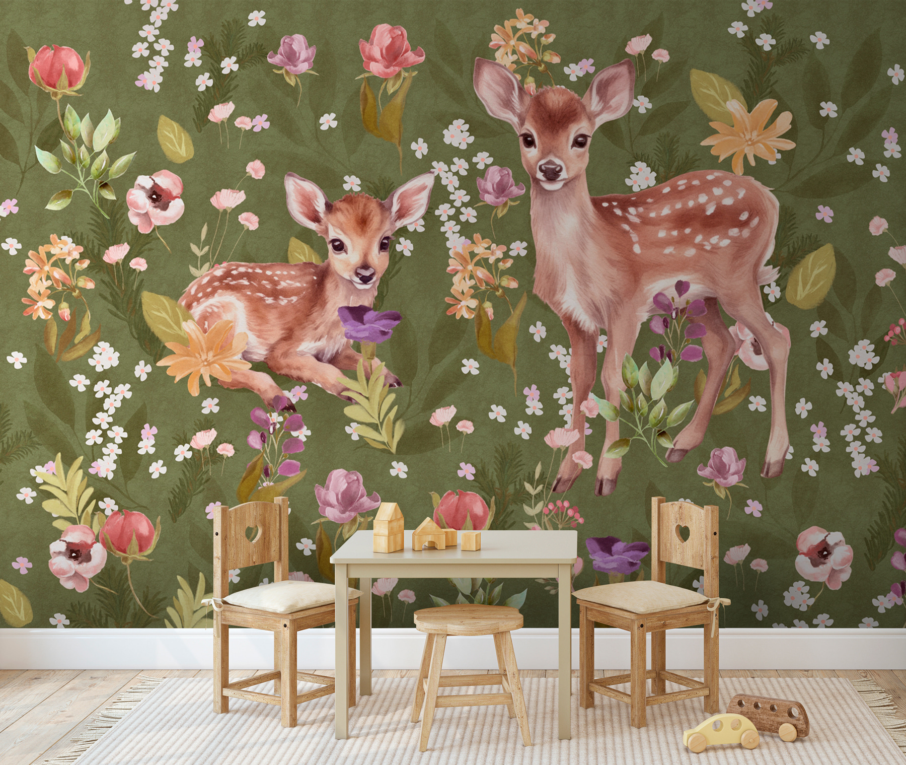 Verwandeln Sie jeden Raum in einen skurrilen Zufluchtsort mit dieser atemberaubenden Fototapete, auf der charmante Hirsche zwischen leuchtenden Blumen herumtänzeln. Stellen Sie sich vor, Sie könnten sich in einem Raum entspannen, in dem die Natur direkt an Ihren Wänden lebendig wird. Die sanften Farben und die süßen kleinen Tiere schaffen eine einladende Atmosphäre, die die Fantasie von Kindern anregt oder Erwachsenen einen friedlichen Rückzugsort bietet. Es ist, als würde man sich ein Stück Zauberwald ins Haus holen. Ob im Kinderzimmer, im Spielzimmer oder einfach in einer gemütlichen Ecke, dieses Wandbild wird mit Sicherheit die Herzen erwärmen und ein Lächeln hervorrufen. Es ist wie ein kleines Fenster zur Natur, nur ohne die Käfer!