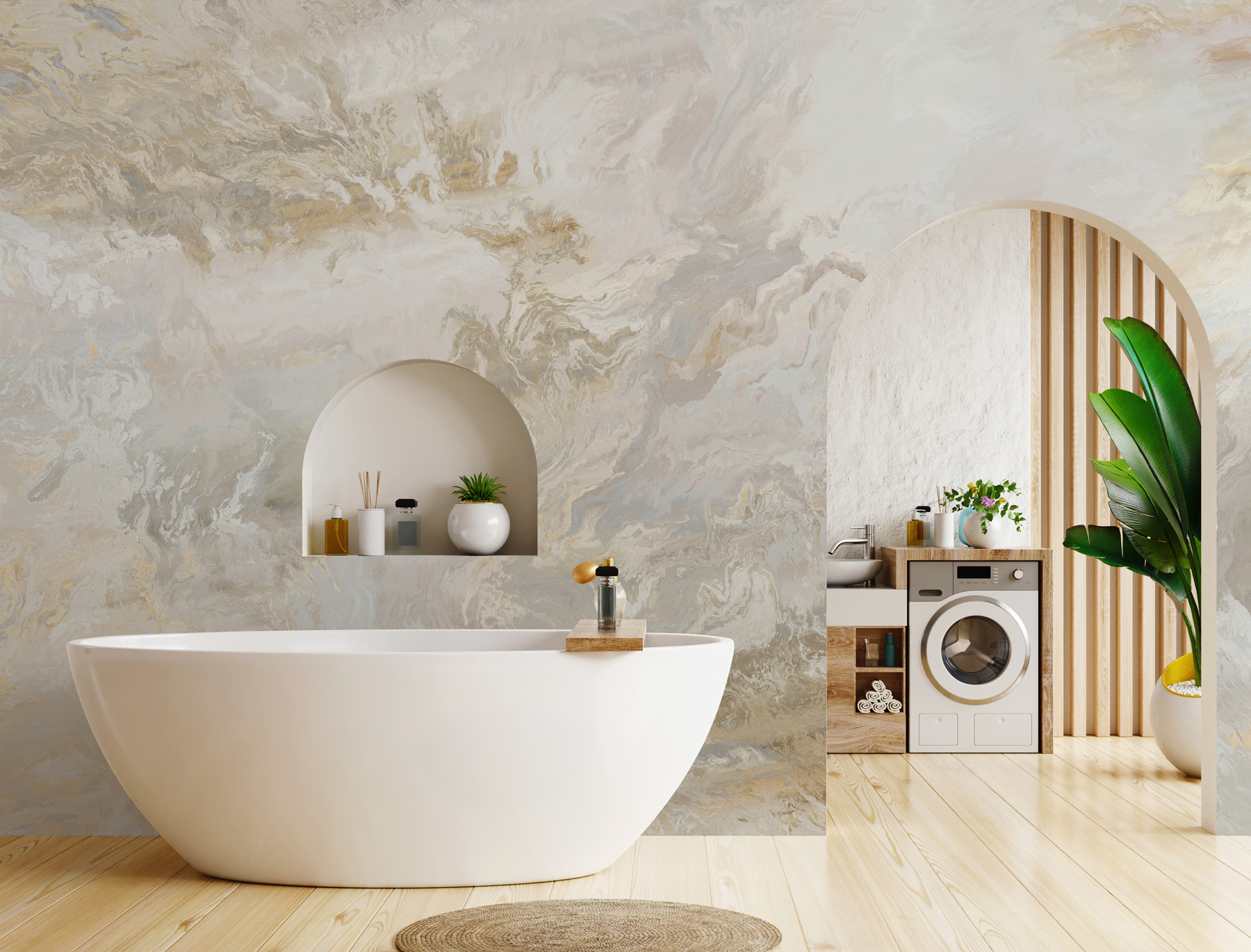 Verwandeln Sie jeden Raum mit diesem eleganten, wirbelnden Marmorwandbild. Seine sanften Töne und fließenden Muster schaffen einen beruhigenden Rückzugsort direkt bei Ihnen zu Hause. Stellen Sie sich vor, Sie betreten Ihren Raum und fühlen sich sofort entspannt, als ob Sie in einem schicken Café einen Milchkaffee schlürfen würden, anstatt eine schlichte Wand anzustarren. Dieses Wandbild eignet sich perfekt für ein Wohnzimmer oder ein ruhiges Plätzchen und lädt zu endlosen Tagträumen ein. Als hätten sich Kunst und Dekoration zusammengetan, um eine schöne Party in Ihrem Zuhause zu feiern! Und weil es sich leicht abziehen und aufkleben lässt, können Sie Ihre neue Wand im Handumdrehen bewundern – ganz ohne Kleber. Wer hätte gedacht, dass es so einfach ist, Ihre Stimmung zu verändern?