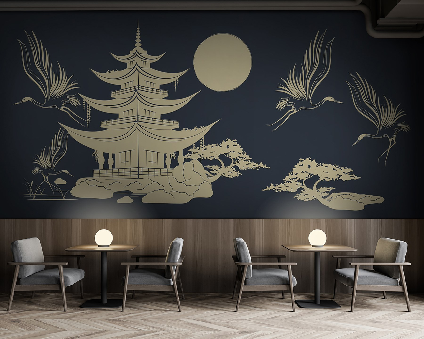 Verwandeln Sie jeden Raum in einen ruhigen Zufluchtsort mit dieser wunderschönen Fototapete, die eine anmutige Pagode und elegante Kraniche zeigt. Der weiche Aquarellstil bringt ein Gefühl der Ruhe, fast wie ein Hauch von frischer Luft direkt in Ihr Zuhause. Stellen Sie sich vor, Sie schlürfen einen Tee, während Sie dieses Kunstwerk betrachten – vielleicht vergessen Sie dabei sogar den Wäschestapel! Die satten Farben und Details können zu Gesprächen anregen und zu Tagträumen von fernen Ländern inspirieren. Es ist perfekt für jeden, der seinem Raum einen Hauch von Ruhe und einen Hauch von Laune verleihen möchte. Mit jedem Blick spüren Sie, wie die Last des Tages von Ihnen abfällt, als würden Sie einen friedlichen Rückzugsort betreten. Ihre Wände könnten zum Gesprächsthema der Stadt werden!