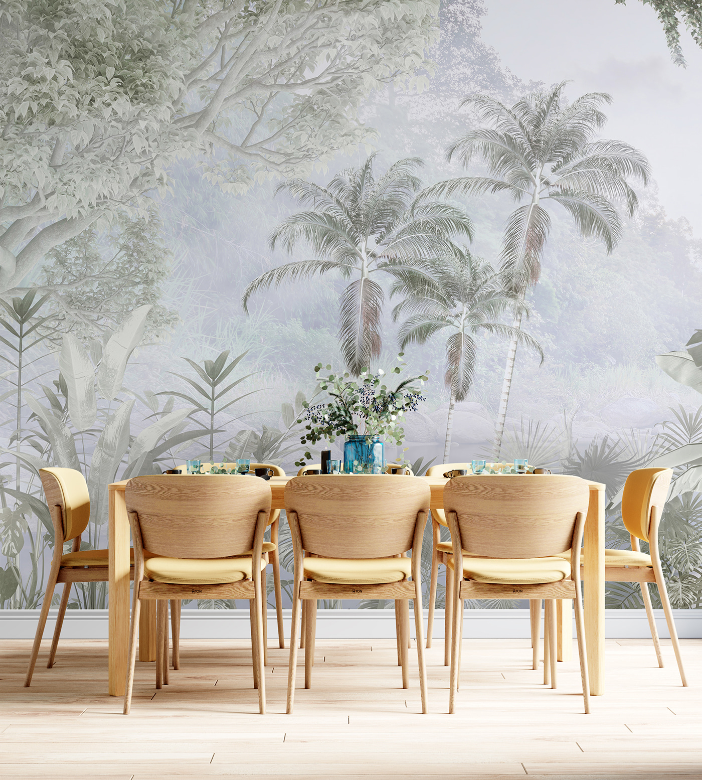 Verwandeln Sie jeden Raum in einen luftigen Zufluchtsort mit dieser Fototapete, die eine üppige Gruppe von Palmen zeigt. Es ist, als ob Sie sich ein Stück Paradies direkt in Ihr Wohnzimmer holen würden – stellen Sie sich vor, Sie schlürfen einen Kaffee, während Sie auf die sich wiegenden Palmen blicken. Die sanften Farben sorgen für eine beruhigende Atmosphäre, perfekt für einen friedlichen Rückzugsort. Vielleicht ist es die Kulisse für gemütliche Filmabende oder ein perfekter Ort für die endlosen Zoom-Anrufe – wer würde sich nicht ein tropisches Paradies wünschen? Diese Fototapete ist im Grunde ein Urlaub, für den man nicht packen muss. Ihre Wände haben ein wenig Spaß verdient, nicht wahr?