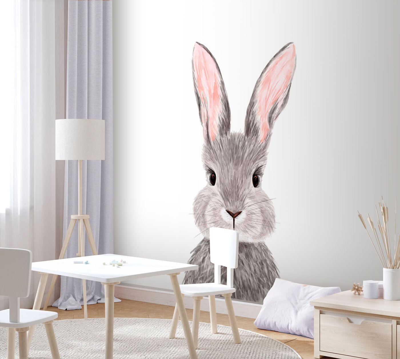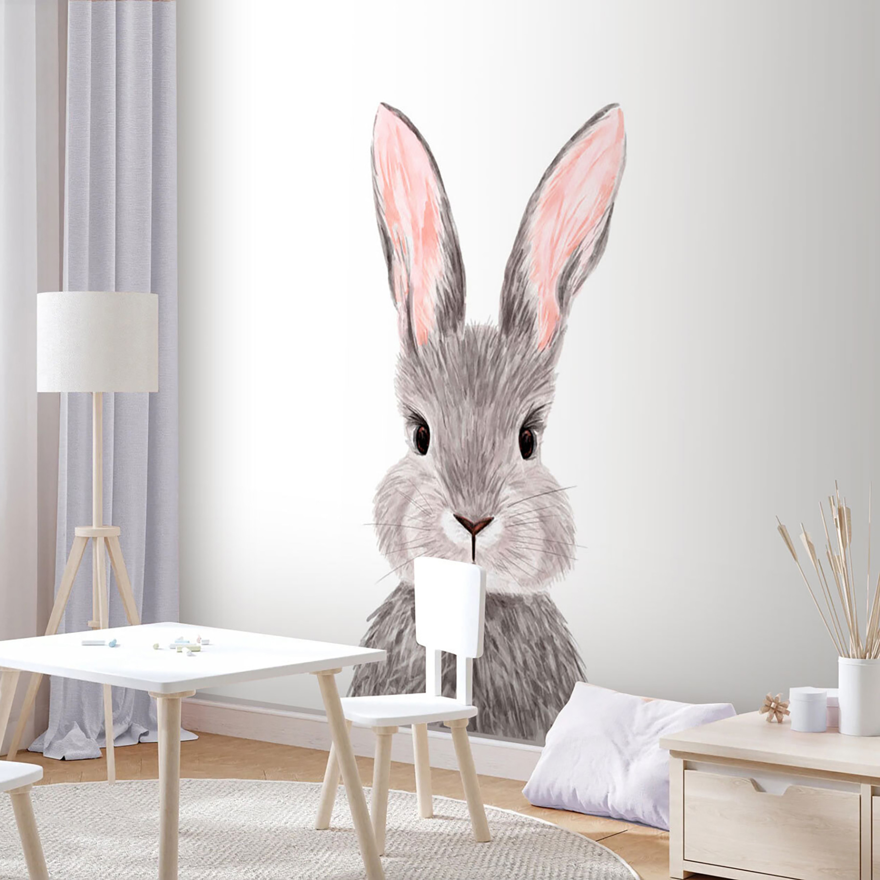 Dank seines schlichten Designs passt er zu verschiedenen Dekoren, ist aber dennoch der Star des Raumes. Es ist erstaunlich, wie ein kleiner Hauch von Hase eine gewöhnliche Wand in etwas Magisches verwandeln kann, oder? Wenn Sie also Lust auf eine Prise Zauber und eine Prise Liebenswürdigkeit haben, ist dieses Wandbild genau das Richtige für Sie. Es ist mehr als nur eine Dekoration – es ist ein Lächeln, das jeden Tag aufs Neue entsteht.