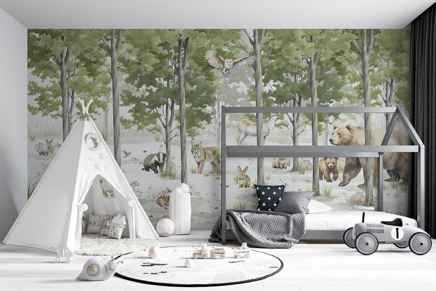 Und hey, die sanften Grüntöne und Details sind einfach beruhigend. Ob es nun das sanfte Rascheln der Blätter ist, das Sie sich vorstellen, oder die subtilen Bewegungen der Tiere, es wird jedem Raum ein bisschen mehr Magie verleihen. Perfekt für alle, die von der Natur träumen, ohne die lästigen Mücken. Nur zu, lassen Sie Ihre Wände eine Geschichte erzählen.