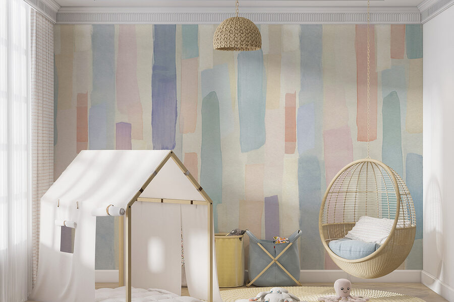 1 Rezension für Fototapeten Pastellfarbenes Aquarellstreifenmuster