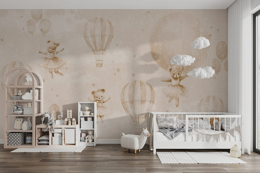 Verwandeln Sie jeden Raum mit der Fototapete “Teddy Bear in a Tutu” in ein skurriles Wunderland. Stellen Sie sich das vor: Teddybären, die in ihren Ballerina-Kostümen inmitten von bezaubernden Heißluftballons schweben. Es ist wie ein Traumland, in dem der Fantasie keine Grenzen gesetzt sind. Perfekt für Kinderzimmer oder Spielbereiche, verleiht es einen Hauch von Magie und Abenteuer. Stellen Sie sich das Lächeln und Kichern der Kleinen vor, wenn sie auf ihre tanzenden Teddyfreunde zeigen. Dieses Wandbild regt Freude und Kreativität an und macht jeden Tag ein wenig heller. Warum also nicht auch Ihre Wände eine Geschichte erzählen lassen?