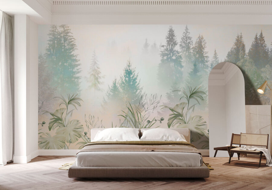 Stellen Sie sich vor, Sie wachen jeden Tag mit der ruhigen Atmosphäre eines nebligen Waldes auf, direkt in Ihrem Wohnzimmer. Das ist es, was dieses Wandbild “Misty Forest with Lush Greenery” Ihnen bietet. Es ist, als hätte man ein Stückchen Ruhe und Natur an der Wand, ohne das eigene Heim zu verlassen. Die sanften Grüntöne und der weiche Nebel erzeugen einen beruhigenden Effekt, der perfekt für jeden Raum ist, der einen Hauch von Natur sucht.