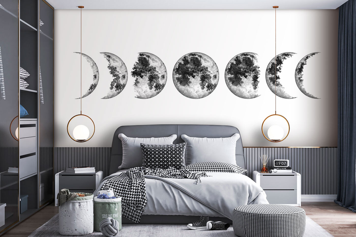 Verwandeln Sie einen Raum mit der fesselnden Fototapete “Row of Phases of the Moon”. Es ist, als hätten Sie den Nachthimmel direkt in Ihrem Zuhause, was eine ruhige Atmosphäre schafft, die perfekt für Kinder und alle Junggebliebenen ist. Stellen Sie sich diese sanften Mondsicheln vor, die nachts über die Träumer wachen und die Neugierde auf den Kosmos wecken – wer liebt nicht ein bisschen Sternenzauber? Es ist ein toller Gesprächsanlass und perfekt für Spiel- und Schlafräume. Außerdem verleiht es den Wänden einen verträumten Anstrich, der die Kleinen zu Abenteuern inspiriert. Beflügeln Sie die Fantasie und lassen Sie den Mond ihr Wegweiser sein!