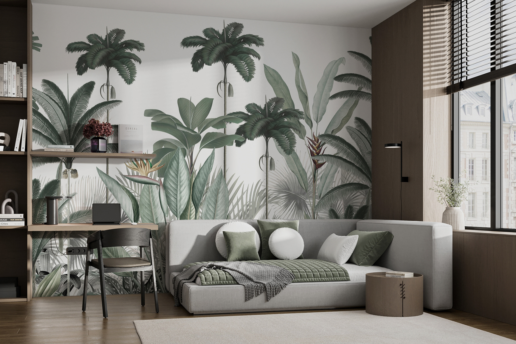 Die Details, oh, sie sind erstaunlich. Man kann die Blätter fast spüren und die frische tropische Luft riechen! Es ist mehr als offensichtlich, dass es in Kategorien wie Dschungelbaum-Wandbilder und tropische Wandbilder gehört – es ist ein absolutes Highlight. Wenn es dich also juckt, etwas Ruhe und Schönheit in deinen Raum zu bringen, ist dieses Wandbild genau das Richtige für dich. Machen Sie sich bereit, sich in Ihre Wände zu verlieben!