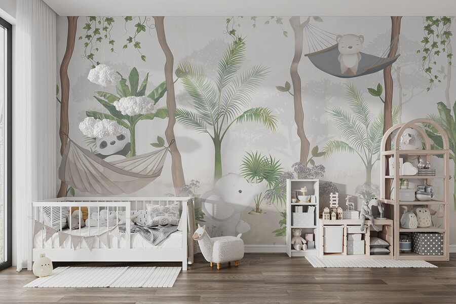 Stellen Sie sich vor, Sie betreten einen Raum mit dieser bezaubernden Fototapete “Cartoon of a Bear on a Hammock”. Es ist, als würde man einen skurrilen Wald betreten, in dem freundliche Tiere im totalen Zen-Modus chillen. Ein Panda schaukelt entspannt in einer Hängematte, ein Elefant erkundet das üppige Grün und eine Giraffe ist einfach zu charmant, um sie in Worte zu fassen. Perfekt für Kinderzimmer – ob Töchter, die von Märchen träumen, oder Söhne, die ein gutes Abenteuer lieben. Es ist mehr als nur eine Wandverkleidung; es ist ein Stück verzaubertes Waldleben, das Gute-Nacht-Geschichten lebendig werden lässt. Er ist so süß, dass man sich am liebsten gleich in die Hängematte legen und mitmachen möchte. Wer würde nicht einen Bären mit ultimativen Entspannungszielen lieben, oder?
