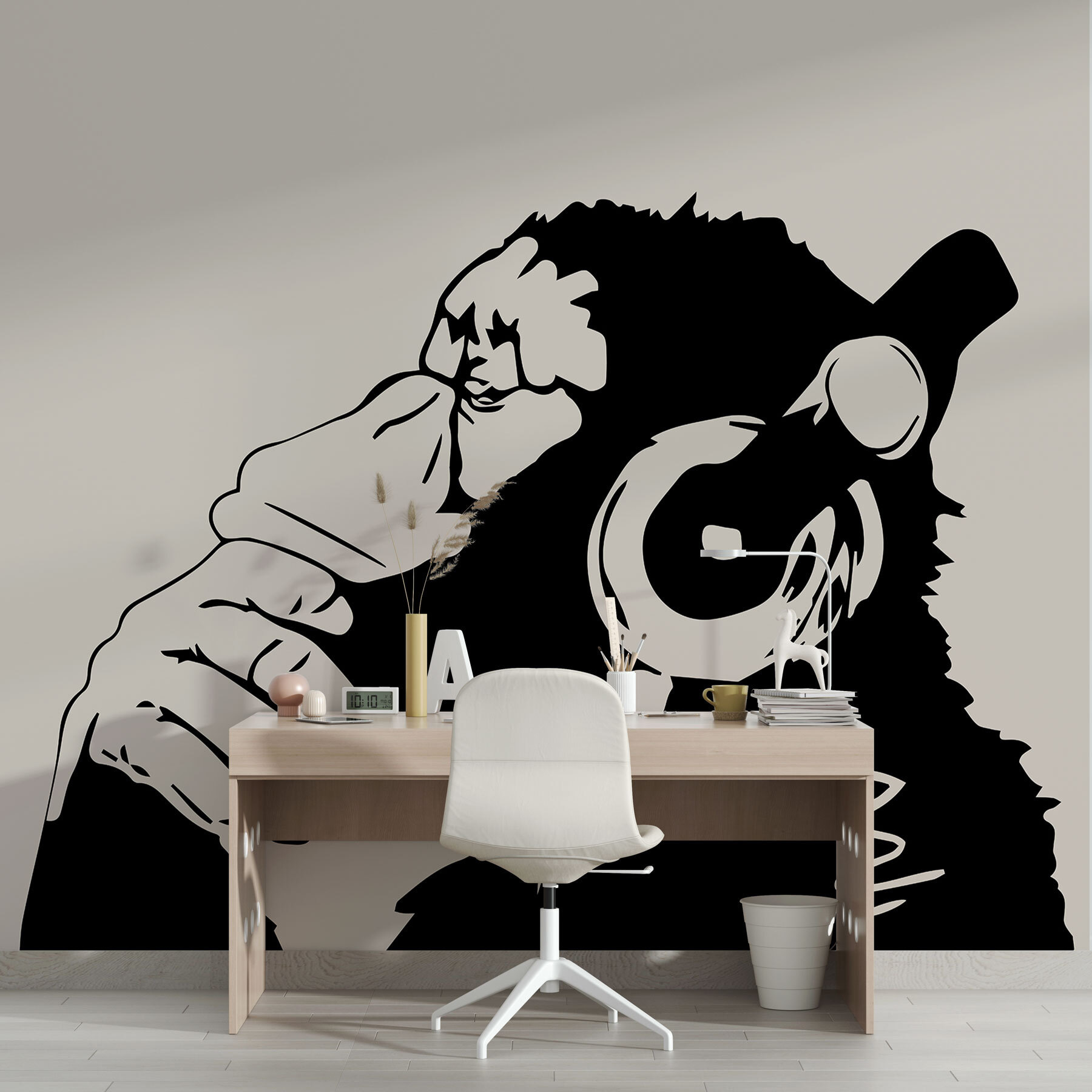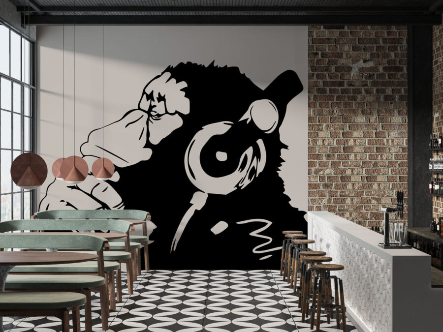 Haben Sie eine langweilige Wand, die etwas Persönlichkeit braucht? Erwecken Sie sie mit dieser Fototapete “Affe mit Kopfhörern” zum Leben! Perfekt, um jedem Raum einen Hauch von Spaß zu verleihen, egal ob es sich um ein Kinderzimmer, ein Spielzimmer oder sogar Ihr Büro handelt, wenn Sie sich abenteuerlich fühlen. Dieser freche Affe hat es einfach drauf – manchmal muss man einfach die Musik aufdrehen und sich in seiner eigenen Welt verlieren. Er ist schrullig, modern und bringt jeden zum Lächeln. Kennst du dieses Gefühl, wenn die Musik genau richtig ist und alles andere verblasst? Ja, dieser Affe versteht es. Deine Wände werden es dir danken!