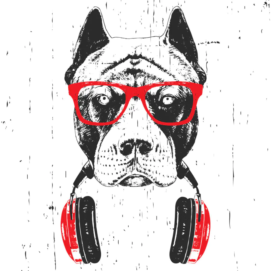 Bringen Sie mit dieser Fototapete eines Hundes mit roter Brille und Kopfhörern einen Hauch von Coolness in Ihren Raum. Perfekt für ein Kinderzimmer, ein hippes Büro oder jeden anderen Ort, der eine Dosis Laune braucht. Stellen Sie sich vor, Sie kommen herein und freuen sich jedes Mal aufs Neue, wenn Sie das Bild sehen. Außerdem ist es ein perfekter Gesprächsanlass – wer würde nicht gerne über diesen schicken Hund plaudern? Das schwarz-weiße Design mit einem Hauch von Rot verleiht ihm einen künstlerischen Touch. Es ist lustig, frech und macht jeden Raum unvergesslich.
