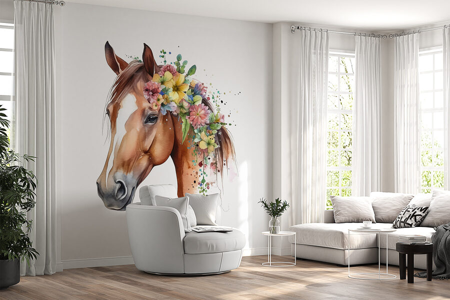 Stellen Sie sich vor, Sie betreten einen Raum und werden von einem majestätischen, mit leuchtenden Blumen geschmückten Pferd begrüßt. Genau das macht dieses Wandbild – es verwandelt eine schlichte Wand in eine entzückende Überraschung! Es ist perfekt für Tierliebhaber, Kinder oder jeden, der seinem Raum einen Hauch von Laune verleihen möchte. Die Farben sind so lebendig, dass sie praktisch von der Wand abprallen. Stellen Sie sich die Freude Ihrer Kinder oder das Lächeln Ihrer Gäste beim Anblick dieses atemberaubenden Hengstes vor.