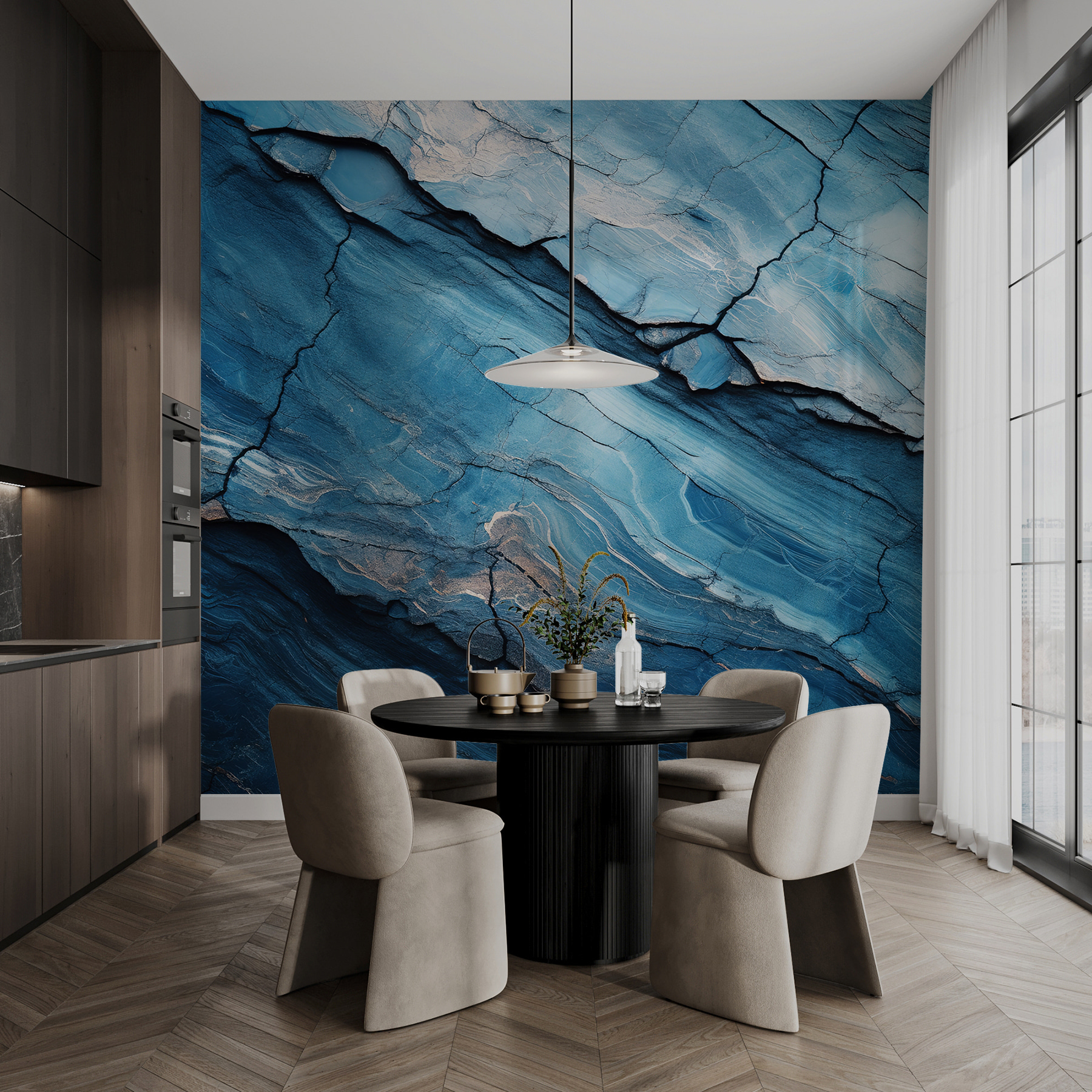 Wollten Sie schon immer einmal das Gefühl haben, ein Stück Ozean oder ein Stück Himmel direkt in Ihrem Wohnzimmer zu haben? Diese Fototapete mit blauen abstrakten Mustern auf einer rissigen Oberfläche tut genau das. Es hat diese coole, fast unwirkliche Ausstrahlung, als ob Sie in die Tiefen einer geheimnisvollen Höhle blicken würden. Die Risse und die Marmorierung verleihen ihm einen rauen, erdigen Touch, so dass es wie eine Mischung aus moderner Kunst und Mutter Natur wirkt. Perfekt, um einen Farbtupfer in jeden Raum zu bringen, ohne zu auffällig zu sein. Ein Blick, und Sie werden sich in seinen Tiefen verlieren – so wie wenn Sie versehentlich viel zu lange auf Ihren Bildschirmschoner starren. Außerdem ist es abziehbar und klebbar, du musst dich also nicht festlegen. Einfach abziehen, aufkleben, und voilà – sofortige Verwandlung! Ideal für alle, die einzigartige Dekoration mit einem Hauch von Drama lieben.