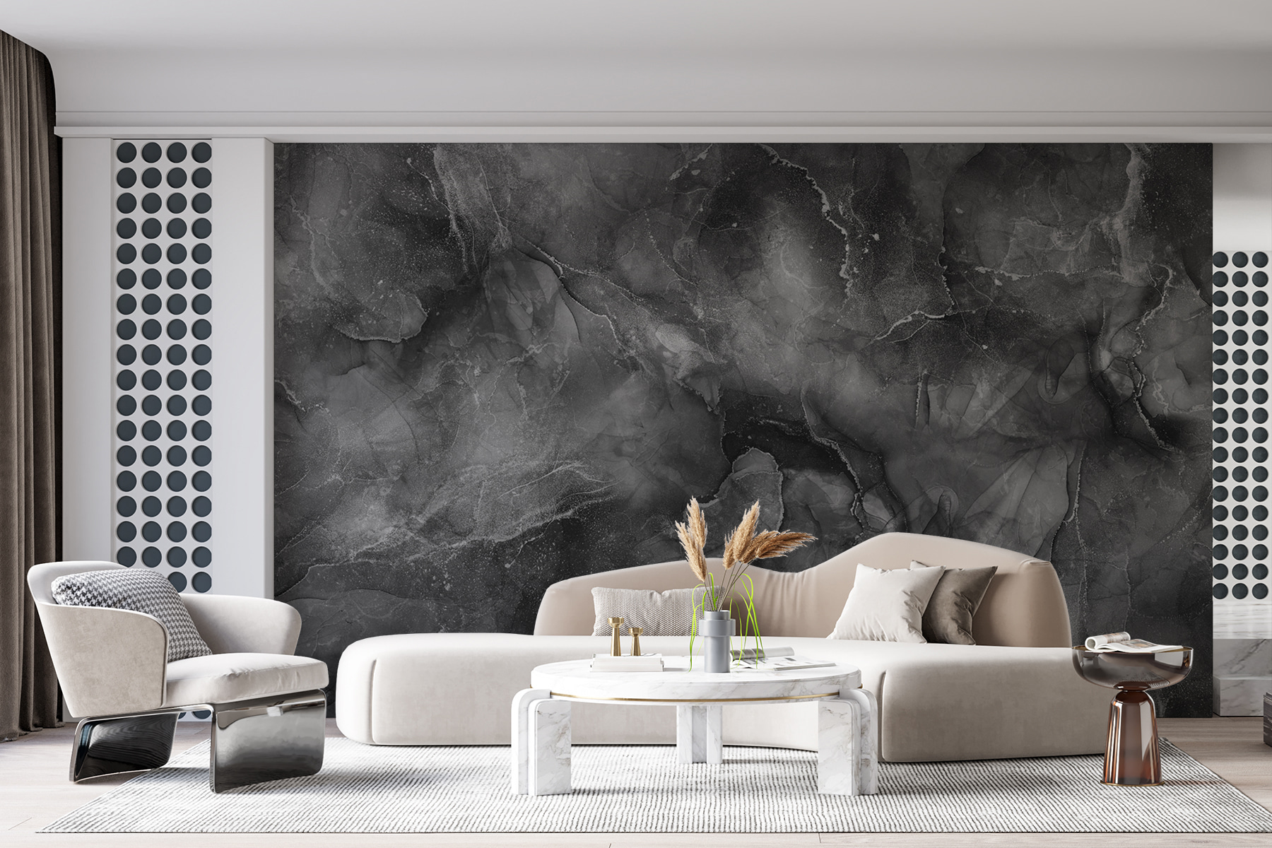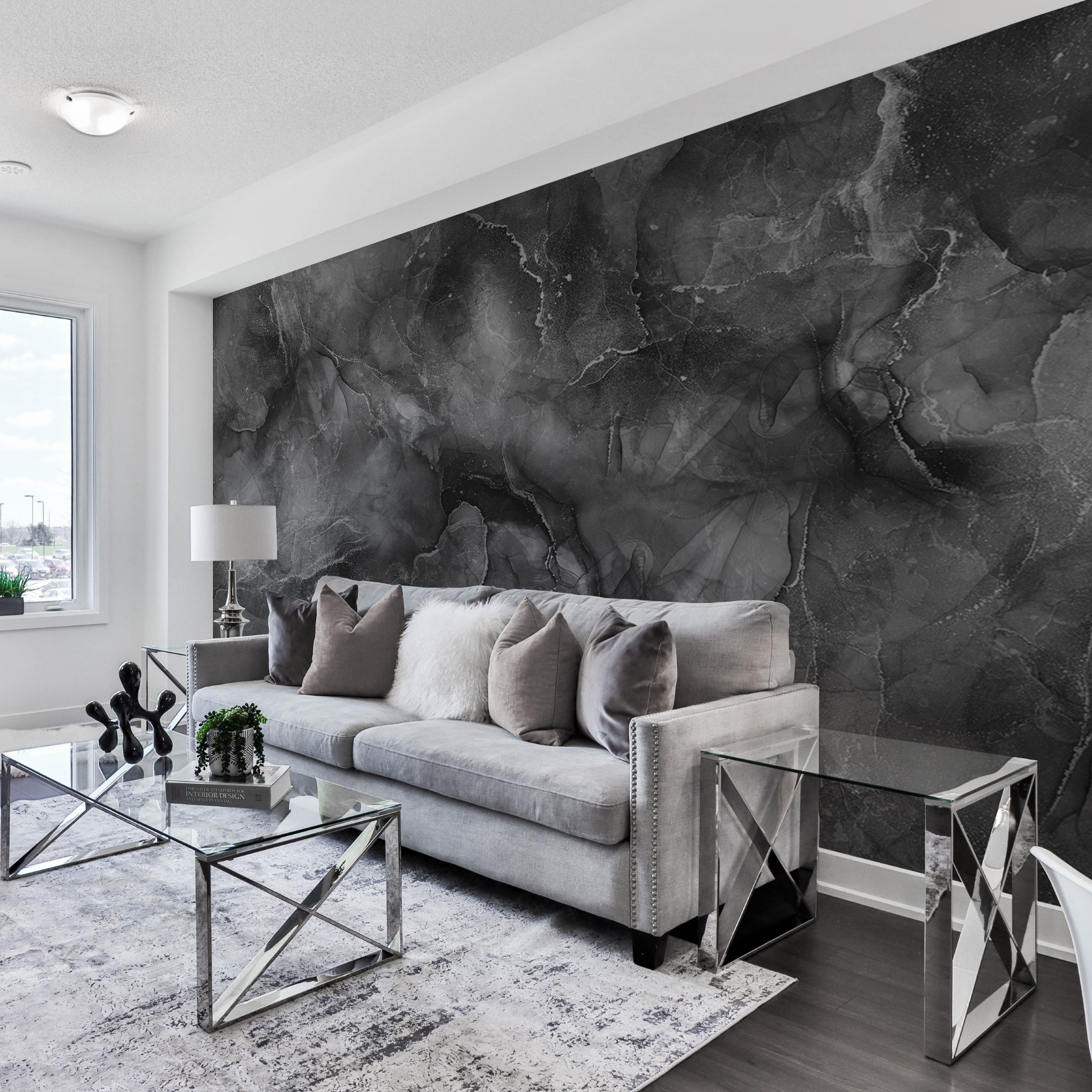 Verwandeln Sie jeden Raum in einen gemütlichen Zufluchtsort mit dieser Wandtapete, die eine atemberaubende Marmorstruktur und abstrakte Muster aufweist. Stellen Sie sich vor, Sie betreten einen Raum, der Raffinesse ausstrahlt, ohne dass Sie eine Einladung zum Abendessen benötigen. Die Wirbel tanzen in satten Grau- und Schwarztönen und lassen sich leicht mit nahezu jedem Farbschema kombinieren – egal, ob es sich um kräftige Knallfarben oder gedeckte Töne handelt.