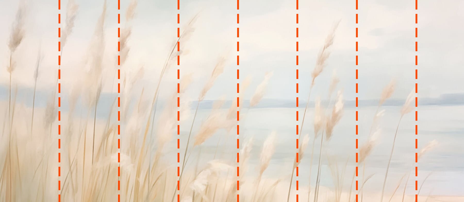 Ihre Tapete wird nach den von Ihnen während des Bestellvorgangs angegebenen Maßen angefertigt. Die Leinwand wird in praktische Abschnitte von jeweils bis zu 50 cm Breite unterteilt.