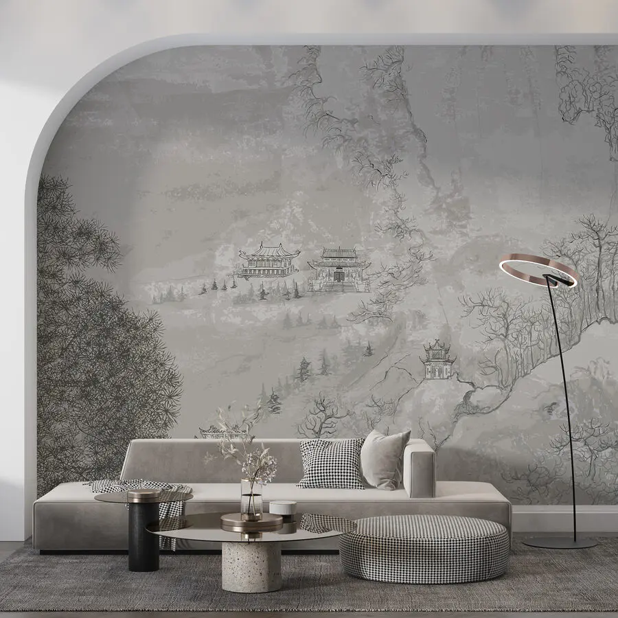 Verwandeln Sie Ihren Raum mit dieser fesselnden Fototapete, die einen ruhigen, architektonischen Charme direkt an Ihre Wände bringt. Stellen Sie sich vor: eine ferne Landschaft mit eleganten Gebäuden inmitten sich sanft wiegender Bäume, die eine ruhige Oase bilden. Es ist, als hätten Sie ein Stück Natur und Kunst miteinander kombiniert, das Ihnen Geschichten aus fernen Ländern zuflüstert. Stellen Sie sich vor, Sie schlürfen Ihren Morgenkaffee, während Sie diese Szene betrachten – ruhig, friedlich und ein wenig inspirierend. Perfekt für gemütliche Ecken oder eine Wand, die etwas Liebe braucht. Entfesseln Sie Ihren inneren Dekorateur und lassen Sie dieses Wandbild Freude in Ihrem Zuhause aufkommen!