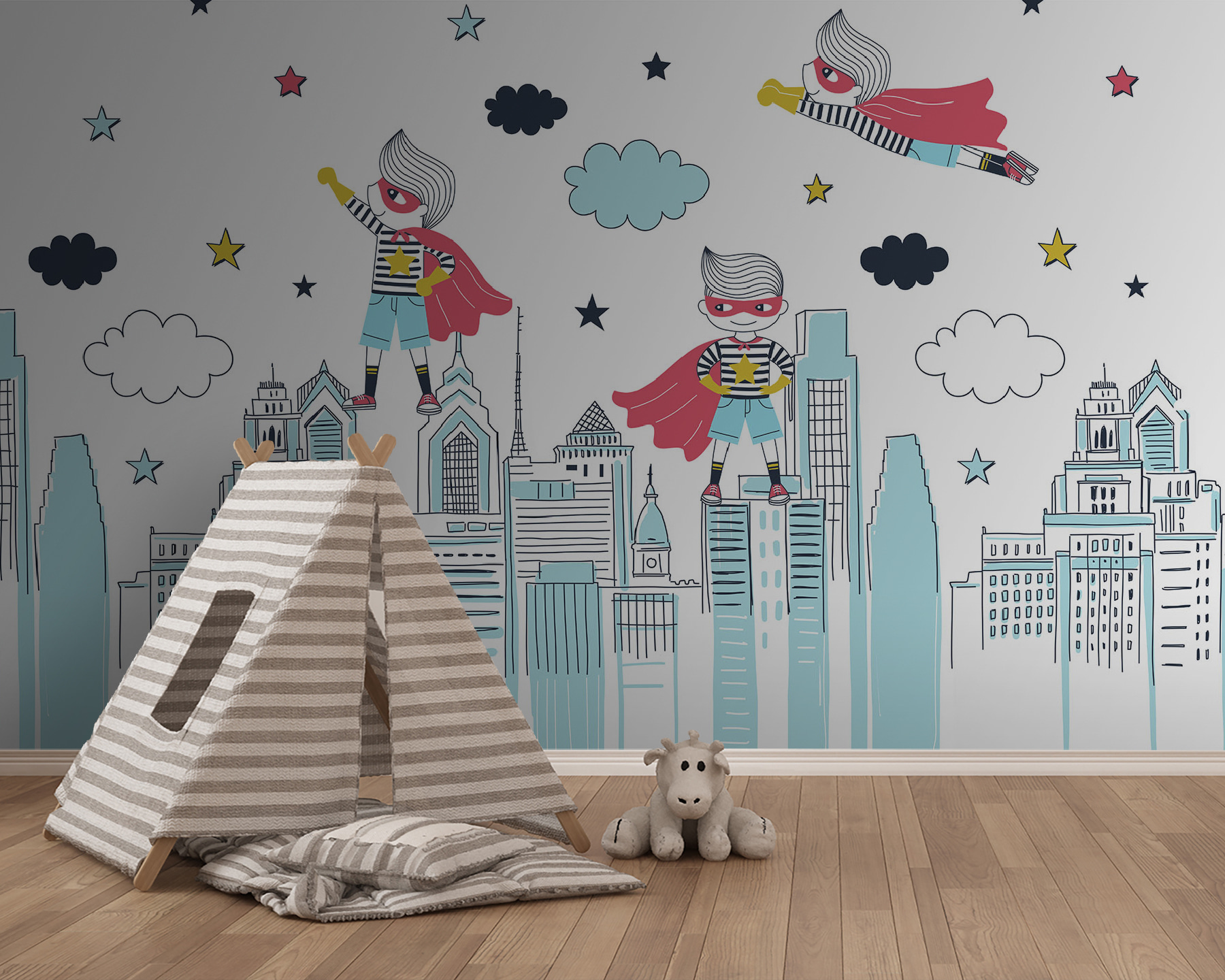 Verwandeln Sie das Kinderzimmer in ein lebendiges Abenteuer mit dieser Fototapete, die einen verspielten Superhelden zeigt. Vor einem hellen Hintergrund schwebt eine Figur mit Umhang über eine Stadtlandschaft, umgeben von skurrilen Wolken und funkelnden Sternen. Es ist nicht nur Dekoration, sondern regt auch die Fantasie und Träume von heldenhaften Heldentaten an! Dieses Wandbild ist perfekt für die Kleinsten und kann zu epischen Gute-Nacht-Geschichten und unzähligen Spielstunden inspirieren. Ob als Geburtstagsüberraschung oder als einfaches Update, dieses Wandbild kann das Zimmer in eine lustige Flucht verwandeln. Wer möchte nicht jedes Mal, wenn er das Zimmer betritt, in eine Welt voller Abenteuer eintauchen?