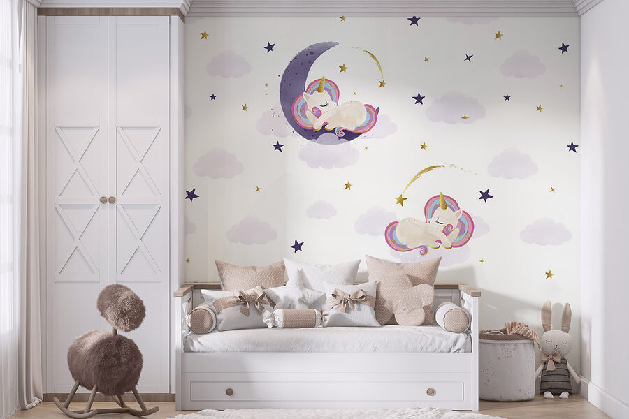 Hallo zusammen! Du möchtest dem Zimmer deiner Kleinen einen Hauch von Magie verleihen? Dann ist dieses Wandbild “Lila Stern” genau das Richtige. Stellen Sie sich einen verträumten Himmel mit sanften Wolken, funkelnden Sternen und – können Sie es glauben? – niedlichen Einhörnern, die lässig auf dem Mond schlafen. Dieses Wandbild ist nicht nur eine Dekoration, sondern auch eine Eintrittskarte in eine Welt, in der die Schlafenszeit beruhigend und voller Launen ist. Stellen Sie sich vor, wie Ihr Kind hinaufschaut und vielleicht von Abenteuern mit seinen neuen Einhorn-Freunden träumt. Es ist, als würde es jeden Tag in ein Märchen eintauchen. Der Bonus: Es ist trendy genug für die breite Masse, aber süß genug für eine einzigartige, persönliche Note. Warum also nicht etwas Sternenstaub auf die Wände streuen? 🌟🚀🦄