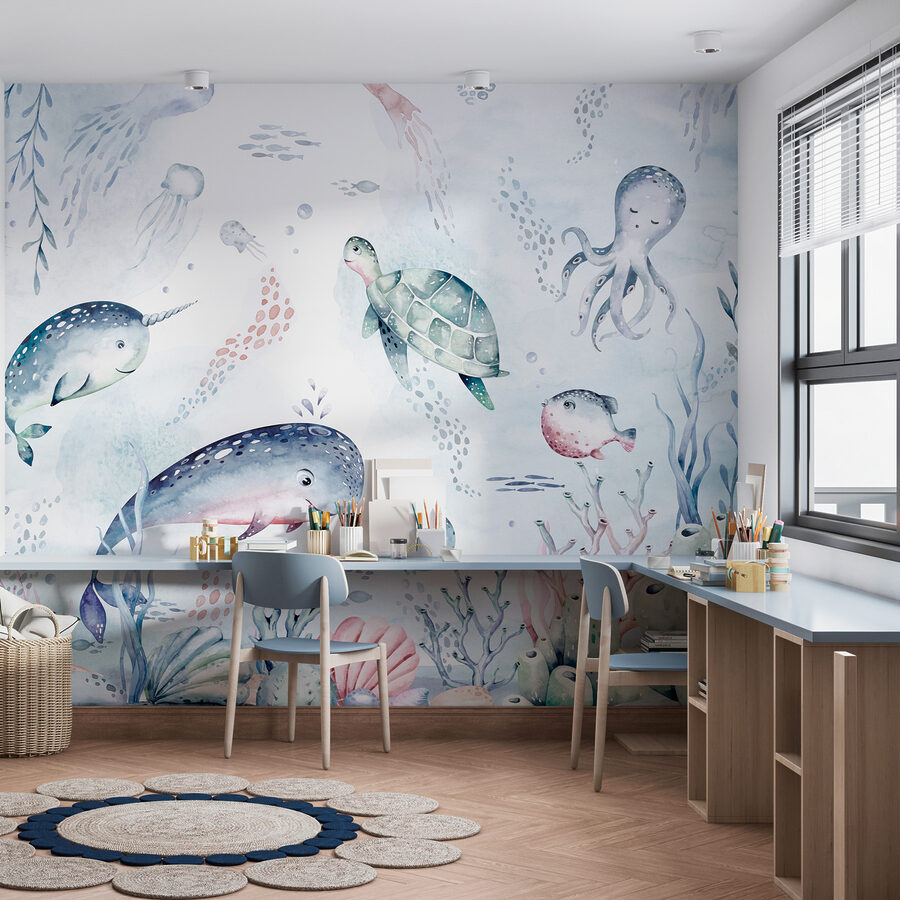 Hallo zusammen! Hast du dir schon einmal vorgestellt, dass du jedes Mal, wenn du einen Raum betrittst, in eine verträumte Unterwasserwelt abtauchst? Dann ist dieses Aquarellbild genau das Richtige für dich. Es ist wie ein skurriler Spritzer Meeresmagie, komplett mit einer super coolen Schildkröte, die durch ein bezauberndes Meer gleitet. Perfekt für Kinder, Kleinkinder oder alle, die sich für die Atmosphäre am Meer begeistern. Die gedämpften und doch lebendigen Farben schaffen eine ruhige, fast verspielte Meeresszene mit niedlichen Meeresbewohnern, die umherschwimmen – als ob der Ozean selbst Ihre Wände küssen würde. Das ist nicht nur Dekoration, sondern ein Mini-Abenteuer, das auf Sie wartet!
