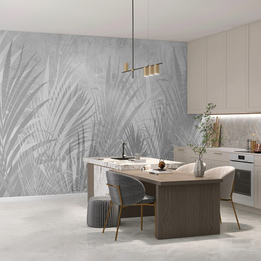 Sagen Sie Hallo zu “Fototapeten Grey and White Image of Plants” – perfekt, um ein wenig tropisches Flair in Ihre gemütliche Ecke zu bringen. Stellen Sie sich vor, Sie wachen jeden Tag mit einer heiteren Szene von Palmenblättern auf, die in beruhigenden Grau- und Weißtönen gehalten sind. Es ist wie eine heitere Dschungelatmosphäre, nur ohne die Käfer!