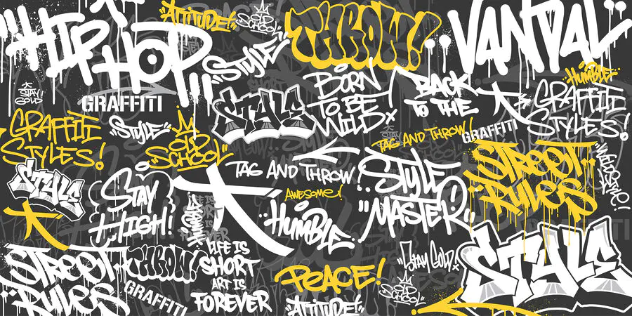 1 Rezension für Fototapeten Gelbes Graffiti auf schwarzem Hintergrund