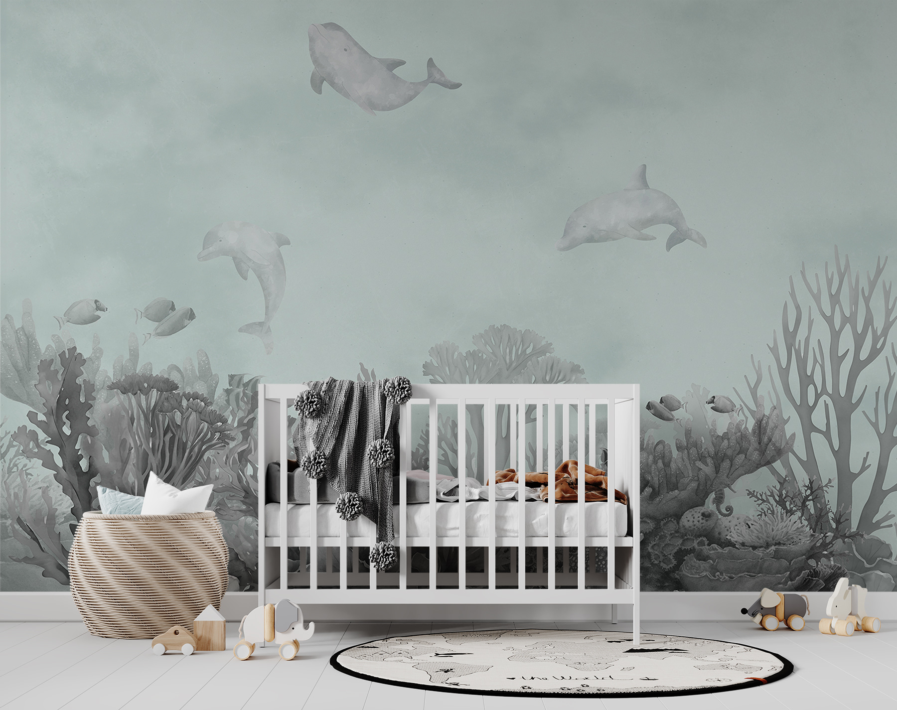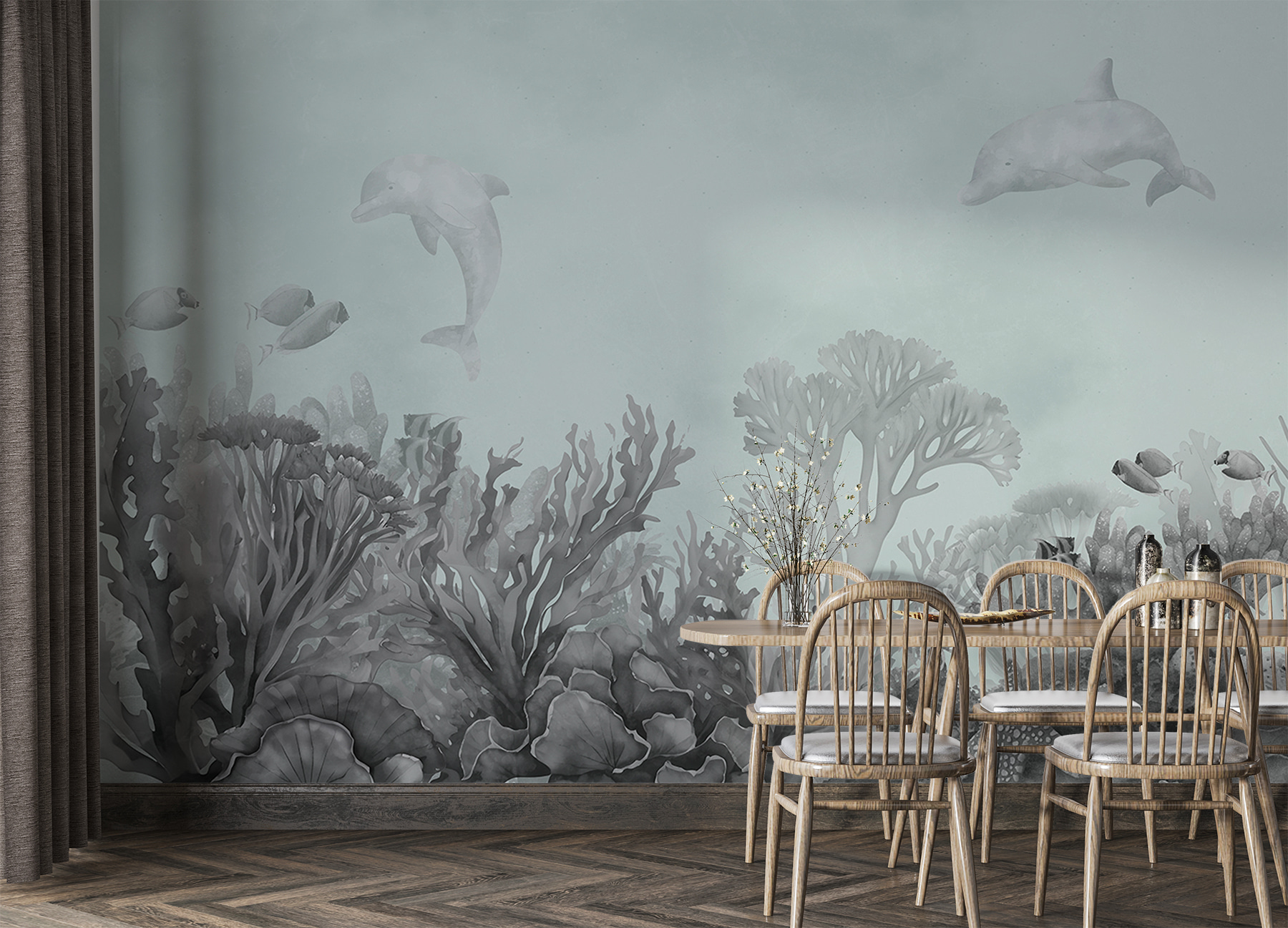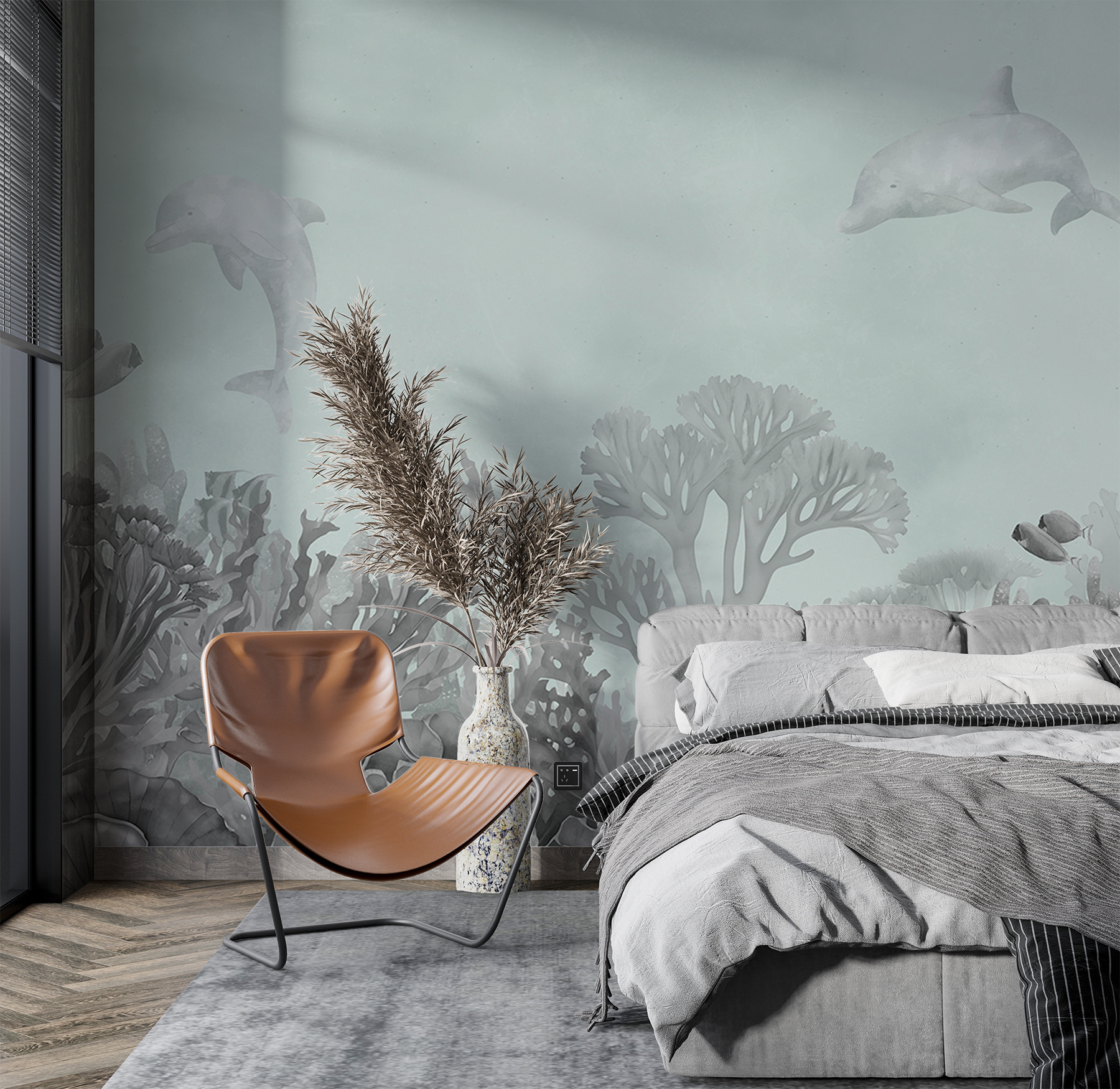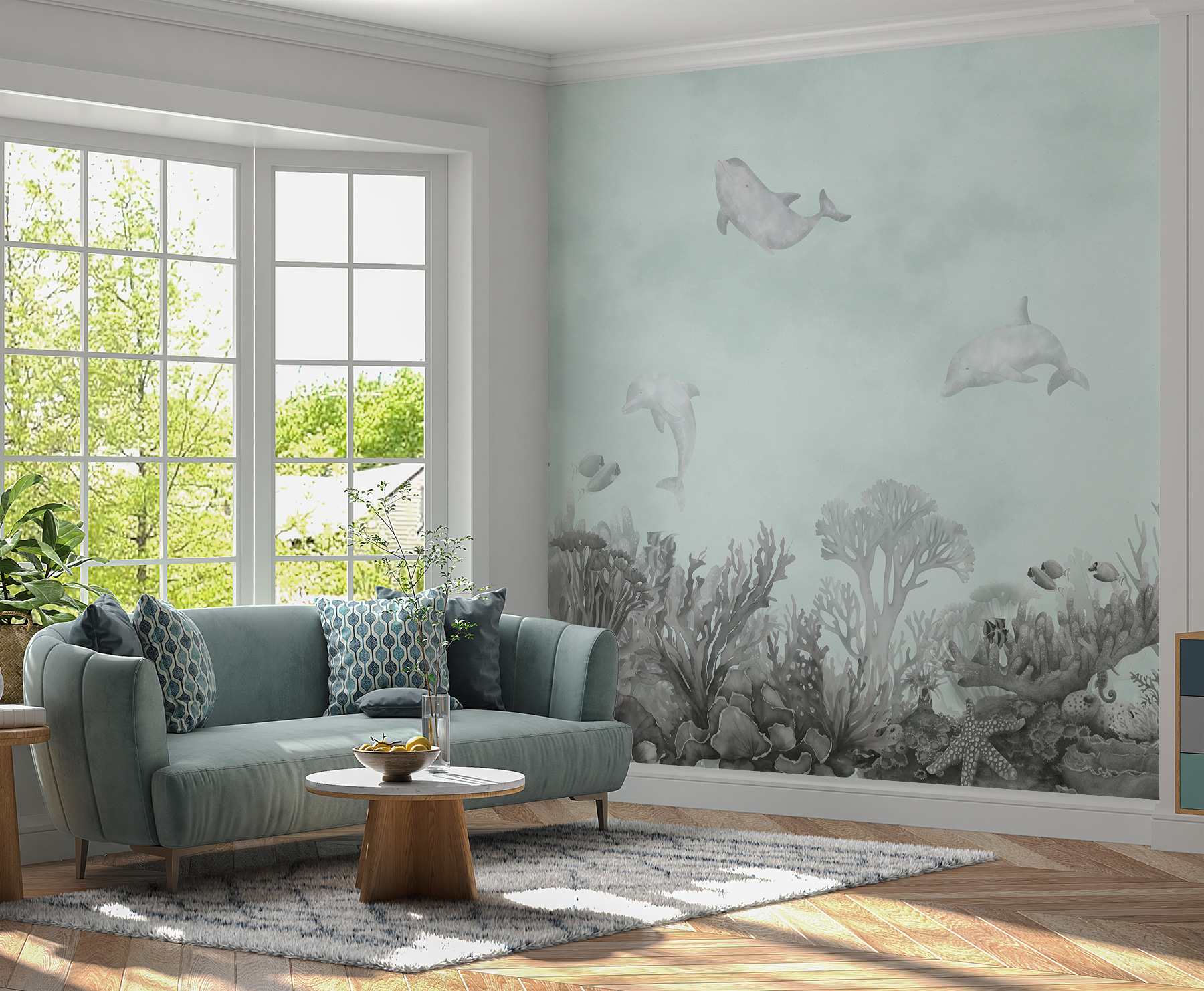 Delfine an deiner Wand? Ja, bitte! Dieses Wandbild “Delfin an der Wand” hat etwas wahrhaft Magisches an sich. Stellen Sie sich vor, Sie schauen nach oben und haben das Gefühl, unter Wasser zu sein, ohne dass Sie sich die Haare nass machen müssen. Die verspielten Delfine und die lebhaften Korallenriffe bringen den Ozean direkt in Ihr Wohn- oder Schlafzimmer oder sogar in das Spielzimmer Ihrer Kinder. Es ist perfekt für Tierliebhaber, Strandfans und alle, die von einem Urlaub am Meer träumen. Es verleiht jedem Raum einen Hauch von Spaß und Laune und lässt ihn lebendig und frisch wirken. Außerdem regt es die Fantasie an – Kinder werden es einfach lieben. Es ist, als hätte man ein persönliches Aquarium, das nie gefüttert werden muss!