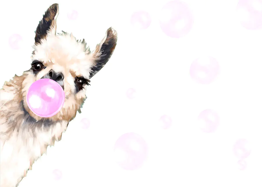 Stellen Sie sich vor, Sie betreten einen Raum und werden von einem Lama begrüßt, das eine rosa Seifenblase bläst – das macht sofort Spaß! Dieses Wandbild ist nicht nur Dekoration, es ist, als hätte man einen schrulligen Freund an der Wand. Es eignet sich perfekt für das Zimmer einer Tochter oder den Aufenthaltsort eines Teenagers und fängt den spielerischen Geist ein, der ein Lächeln hervorruft. Die sanften Farben und das skurrile Design sorgen für eine unbeschwerte Stimmung und schaffen einen Raum, der lebendig und doch gemütlich wirkt. Stellen Sie sich die Freude und das Kichern vor, das es bei einem Filmabend auslösen könnte. Es ist nicht nur eine Wand, es ist ein Erlebnis, das auf sich warten lässt. Perfekt für jeden, der ein wenig Fröhlichkeit in seinen Raum bringen möchte.