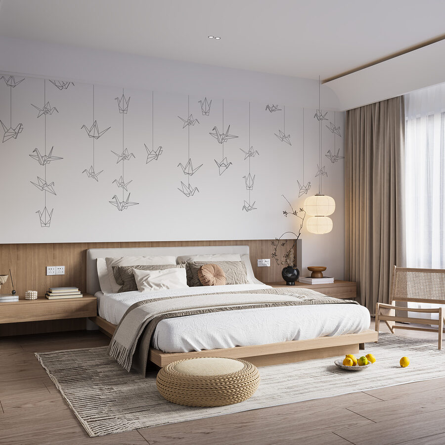 Haben Sie schon einmal daran gedacht, Ihre Wände mit minimalem Aufwand künstlerisch zu gestalten? Sehen Sie sich diese schwarz-weiße Vogeltapete an. Es ist, als hätte man ein Stück aus seinem Lieblings-Skizzenbuch auf Lebensgröße vergrößert. Die einfachen Linien verleihen ihm eine elegante und moderne Ausstrahlung. Stellen Sie sich das Wandbild in Ihrem Wohnzimmer oder an Ihrem Arbeitsplatz vor – ein Bild, das Sie dazu bringt, eine Minute durchzuatmen und zu entspannen. Außerdem haben die sanft hängenden Papierkraniche etwas sehr Beruhigendes, fast so, als ob sie fliegen würden. Es ist die perfekte Mischung aus Kunst und Entspannung. Wenn Sie eine Vorliebe für einzigartige Dekoration haben, die Freude macht (ja, ein Marie Kondo-Moment), dann ist dieses Wandbild genau das Richtige für Sie.