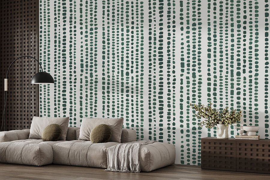 Kennen Sie diese Tage, an denen Sie einfach nur einen Raum auffrischen wollen, aber nichts zu lautes oder verrücktes haben wollen? Diese Fototapete “Grünes und weißes Muster” könnte genau das Richtige für Sie sein. Mit seinen sanften grünen Punkten und Streifen wirkt es wie ein von der Natur inspirierter Strichcode – schrullig, aber wunderbar beruhigend. Stellen Sie sich vor, Sie wachen jeden Morgen mit dieser reizvollen Mischung aus einfacher Geometrie und natürlichen Farbtönen auf. Es ist, als hätte man ein kleines Stückchen Ruhe direkt an der Wand, perfekt, um einen natürlich gemütlichen Raum zu schaffen. Besonders einladend wirkt es in einer Leseecke oder als durchdachter Bürohintergrund. Es hat diese ausgewogene Mischung aus visuellem Interesse, ohne die Sinne zu überwältigen. Oh, und der sanfte Rhythmus dieser Punkte hat fast etwas Meditatives.
