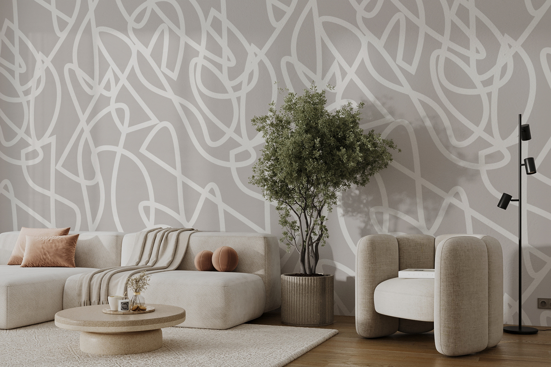 Verwandeln Sie jede Wand in ein modernes Kunstwerk mit dieser atemberaubenden Fototapete “Weiße Linien auf grauem Hintergrund”. Stellen Sie sich ein gemütliches Wohnzimmer oder ein schickes Büro vor, in dem die Wände von einem Tanz eleganter Linien belebt werden. Der weiche graue Hintergrund schafft eine ruhige Atmosphäre, während die verspielten weißen Linien genau die richtige Menge an Laune hinzufügen. Es ist wie eine sanfte Erinnerung daran, das Leben nicht zu ernst zu nehmen – denn wer würde nicht lächeln, wenn er an einem Wandbild vorbeigeht, das wie eine moderne Kritzelei wirkt? Dieses Wandbild eignet sich perfekt, um einer leeren Wand Charakter zu verleihen, und lässt sich mühelos mit verschiedenen Stilen kombinieren. Ob Sie nun Freunde unterhalten oder einen Moment der Ruhe finden, dieses Kunstwerk sorgt für die richtige Stimmung.