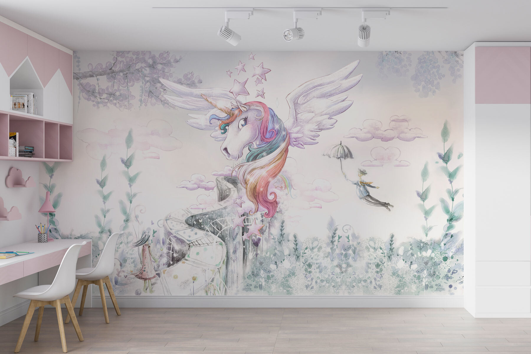 Sie suchen nach einem Hauch von Magie für das Zimmer Ihres Kindes? Sehen Sie sich dieses Wandbild “Einhorn mit Flügeln und Regenbogenhaar” an! Stellen Sie sich vor, Sie wachen in einer Szene auf, die direkt aus einem Märchen stammt – ein skurriles Einhorn mit wallendem, pastellfarbenem Regenbogenhaar, umgeben von sanften Wolken und glitzernden Sternen. Das ist der Traum eines jeden Kindes, gemalt auf die eigene Wand! Diese Fototapete passt wunderbar in Kinderzimmer und kleine Kinderzimmer, so dass es sich anfühlt, als wären sie in ihr Lieblingsmärchenbuch gesprungen. Süß und unaufdringlich, aber dennoch bezaubernd – es weckt Freude und endlose Geschichten. Perfekt für das Wunderland der Kleinen oder für jeden Einhornliebhaber! 🌈🦄