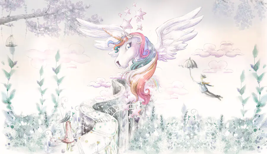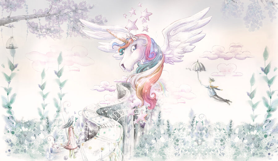 Sie suchen nach einem Hauch von Magie für das Zimmer Ihres Kindes? Sehen Sie sich dieses Wandbild “Einhorn mit Flügeln und Regenbogenhaar” an! Stellen Sie sich vor, Sie wachen in einer Szene auf, die direkt aus einem Märchen stammt – ein skurriles Einhorn mit wallendem, pastellfarbenem Regenbogenhaar, umgeben von sanften Wolken und glitzernden Sternen. Das ist der Traum eines jeden Kindes, gemalt auf die eigene Wand! Diese Fototapete passt wunderbar in Kinderzimmer und kleine Kinderzimmer, so dass es sich anfühlt, als wären sie in ihr Lieblingsmärchenbuch gesprungen. Süß und unaufdringlich, aber dennoch bezaubernd – es weckt Freude und endlose Geschichten. Perfekt für das Wunderland der Kleinen oder für jeden Einhornliebhaber! 🌈🦄