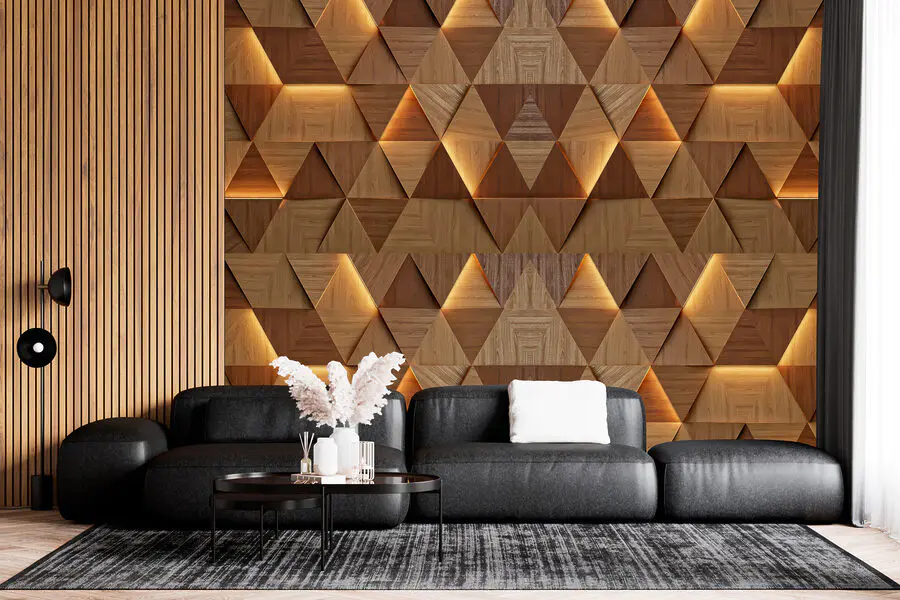 Verwandeln Sie Ihren Raum mit dieser fesselnden Fototapete, die mit Licht und Holz in einem faszinierenden Dreiecksdesign spielt. Stellen Sie sich vor, Sie betreten einen Raum, der warm und einladend wirkt und in dem geometrische Formen über die Wände tanzen. Es ist, als ob man sich die Natur ins Haus holt, mit genau dem richtigen Hauch von modernem Flair. Diese Fototapete ist nicht nur eine Wanddekoration, sondern auch ein Gesprächsanlass. Stellen Sie sich vor, wie Ihre Gäste über die einzigartige Atmosphäre staunen, die es verbreitet. Ob in einer gemütlichen Leseecke oder in einem stilvollen Wohnzimmer, es hebt die Atmosphäre mühelos an. Und wer liebt nicht ein wenig Augenschmaus an seinen Wänden?