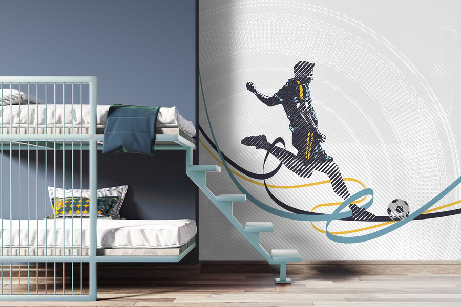 Die Mischung aus abstrakten Linien und leuchtenden Farben verleiht ihm eine coole, moderne Ausstrahlung, die dennoch warm und einladend wirkt. Es ist, als würde man einen perfekten Sportmoment für immer festhalten. Und hey, du musst dir keine Sorgen machen, ob du bei deinem Dekorationsspiel punkten kannst – mit dieser Fototapete liegst du auf jeden Fall in Führung! Farbkleckse bringen alles zum Strahlen. Perfekt für jeden Fußballfan oder jemanden, der einfach ein gutes Action-Foto liebt.