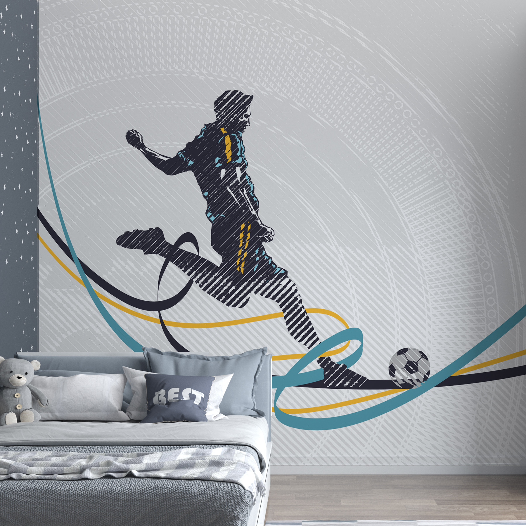 Die Mischung aus abstrakten Linien und leuchtenden Farben verleiht ihm eine coole, moderne Ausstrahlung, die dennoch warm und einladend wirkt. Es ist, als würde man einen perfekten Sportmoment für immer festhalten. Und hey, du musst dir keine Sorgen machen, ob du bei deinem Dekorationsspiel punkten kannst – mit dieser Fototapete liegst du auf jeden Fall in Führung! Farbkleckse bringen alles zum Strahlen. Perfekt für jeden Fußballfan oder jemanden, der einfach ein gutes Action-Foto liebt.