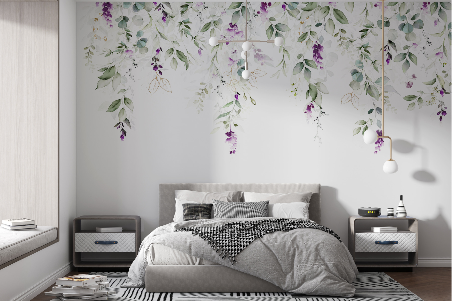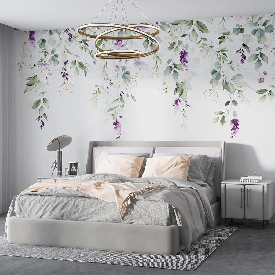Möchten Sie Ihren Raum mit einem Hauch von Natur verschönern? Dann sehen Sie sich diese bezaubernde Fototapete mit lila Blumen auf einem makellosen weißen Hintergrund an. Es hat diese weiche, aquarellartige Ausstrahlung, die Ihnen das Gefühl gibt, in einem friedlichen Garten zu stehen. Stellen Sie sich vor, Sie wachen jeden Tag mit diesem schönen Bild auf – ein echter Stimmungsaufheller, oder? Die lilafarbenen Töne sind auffällig genug, um die Blicke auf sich zu ziehen, ohne überwältigend zu wirken. Dieses Wandbild eignet sich perfekt für jeden Raum, der ein wenig Leben und Farbe braucht, und lässt sich wunderbar mit allen Arten von Dekorationen kombinieren. Es ist ideal, um Ihrem Zuhause einen sanften, botanischen Touch zu verleihen. Einfach traumhaft!