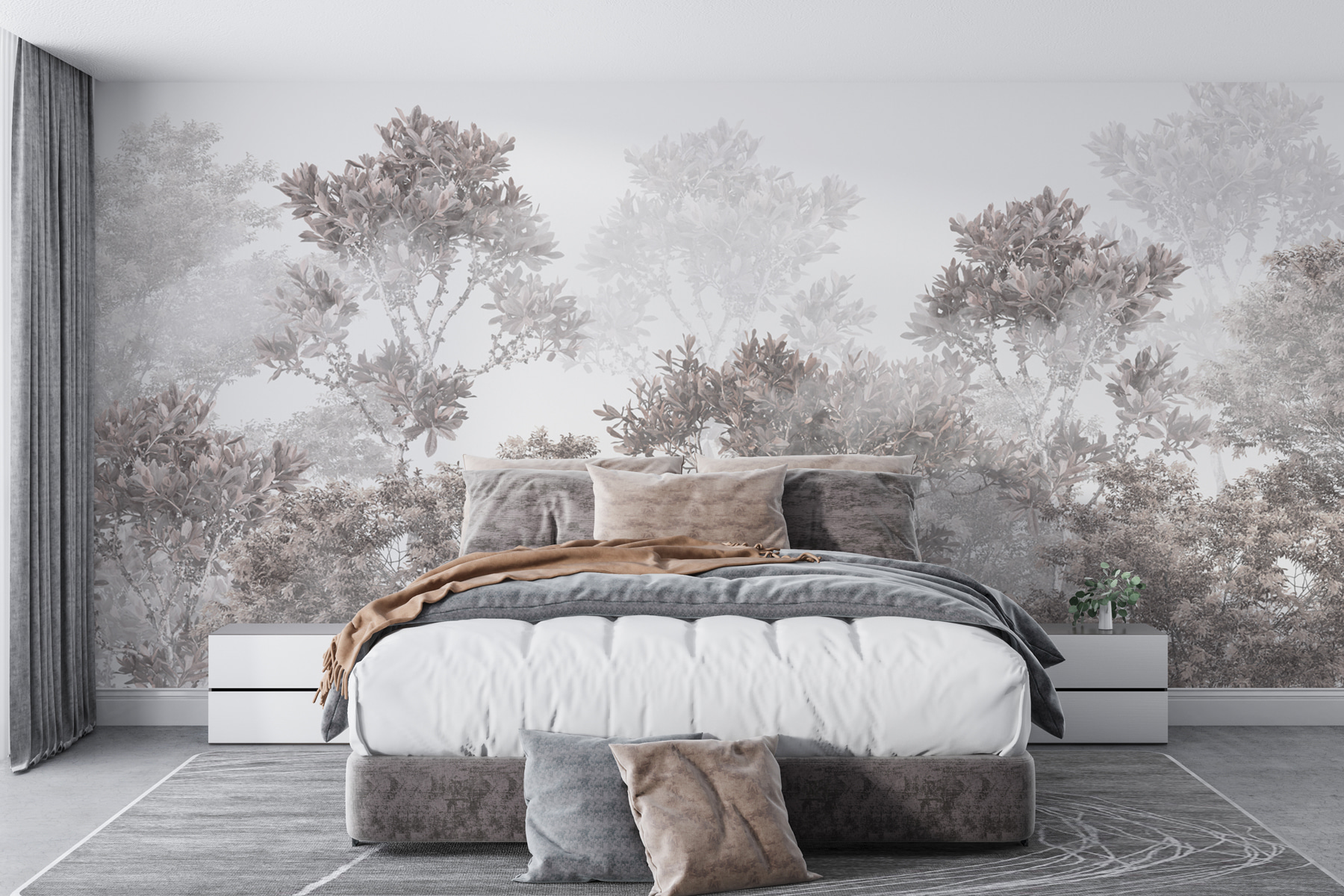 Stellen Sie sich vor, Sie wachen jeden Tag mit der ruhigen Schönheit eines nebligen Waldes auf, direkt in Ihrem eigenen Zuhause. Diese Fototapete “Misty Forest” entführt Sie in eine Welt, in der sich gedämpfte Farben mit Morgennebel vermischen – es ist, als hätten Sie Ihr eigenes geheimes Waldstück. Das Design ist sanft zu den Augen, perfekt, um eine beruhigende Atmosphäre in jedem Raum zu schaffen. Es ist in diesen verträumten, weichen Grautönen und staubigen Brauntönen gehalten, die einem fast das Gefühl geben, frische, frische Luft einzuatmen.
