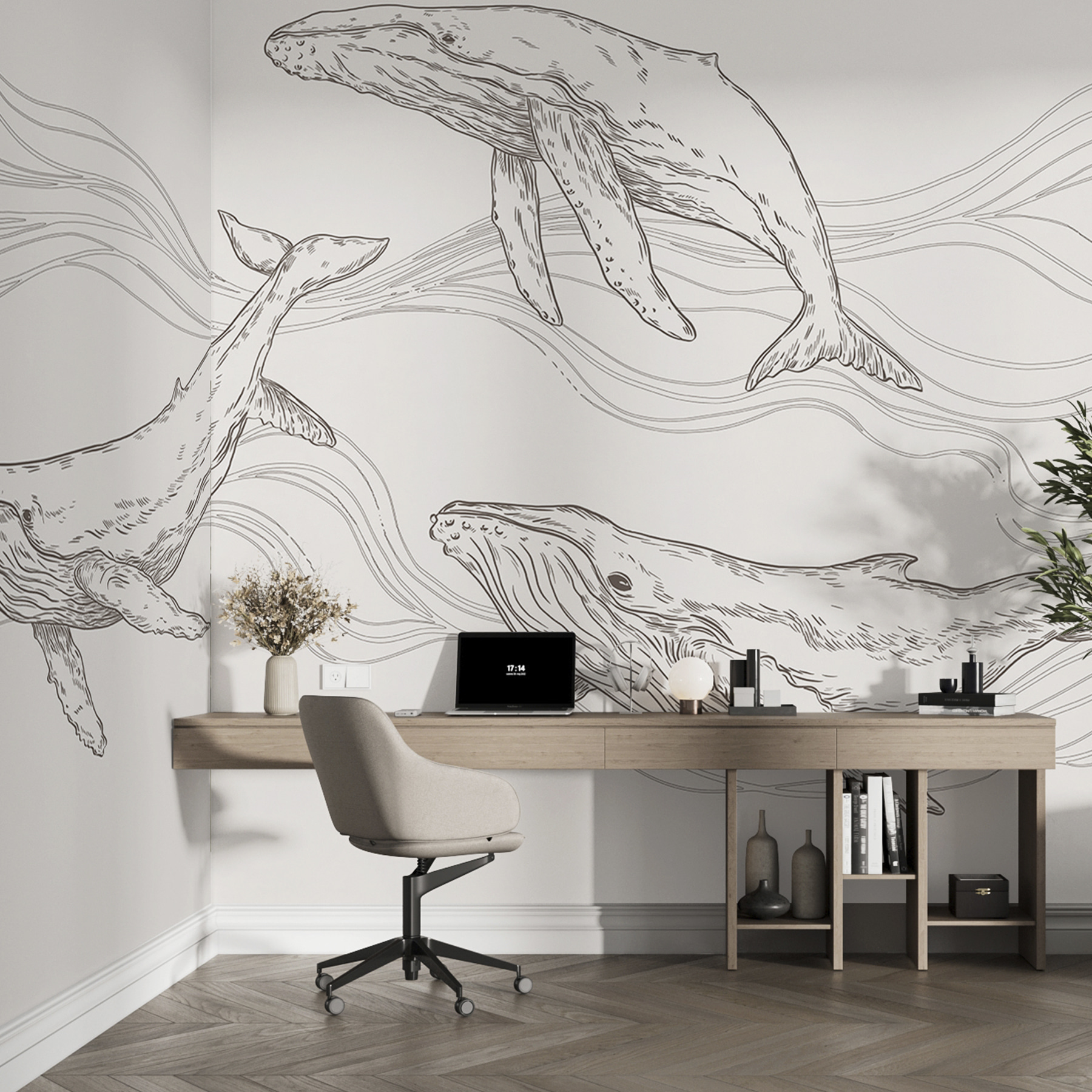 Stellen Sie sich vor, Sie wachen jeden Tag in einem Raum auf, der wie ein ruhiger Unterwasserhafen wirkt. Dieses Wandbild “Whale and Humpback Whale” bringt die ruhige Anmut des Ozeans direkt in Ihr Zuhause. Perfekt für Tierliebhaber, Meeresenthusiasten oder einfach für jeden, der sich eine Prise Laune und Wunder an seinen Wänden wünscht. Die detaillierten Zeichnungen dieser majestätischen Kreaturen scheinen zu tanzen, fast so, als ob sie Sie zu ihrem Unterwasserballett einladen würden. Ganz zu schweigen davon, dass es garantiert für Gesprächsstoff sorgt – jeder wird staunen, wie unglaublich es aussieht. Denken Sie darüber nach – ein bisschen von der friedlichen Atmosphäre am Meer, ohne dass der Sand überall hinkommt!