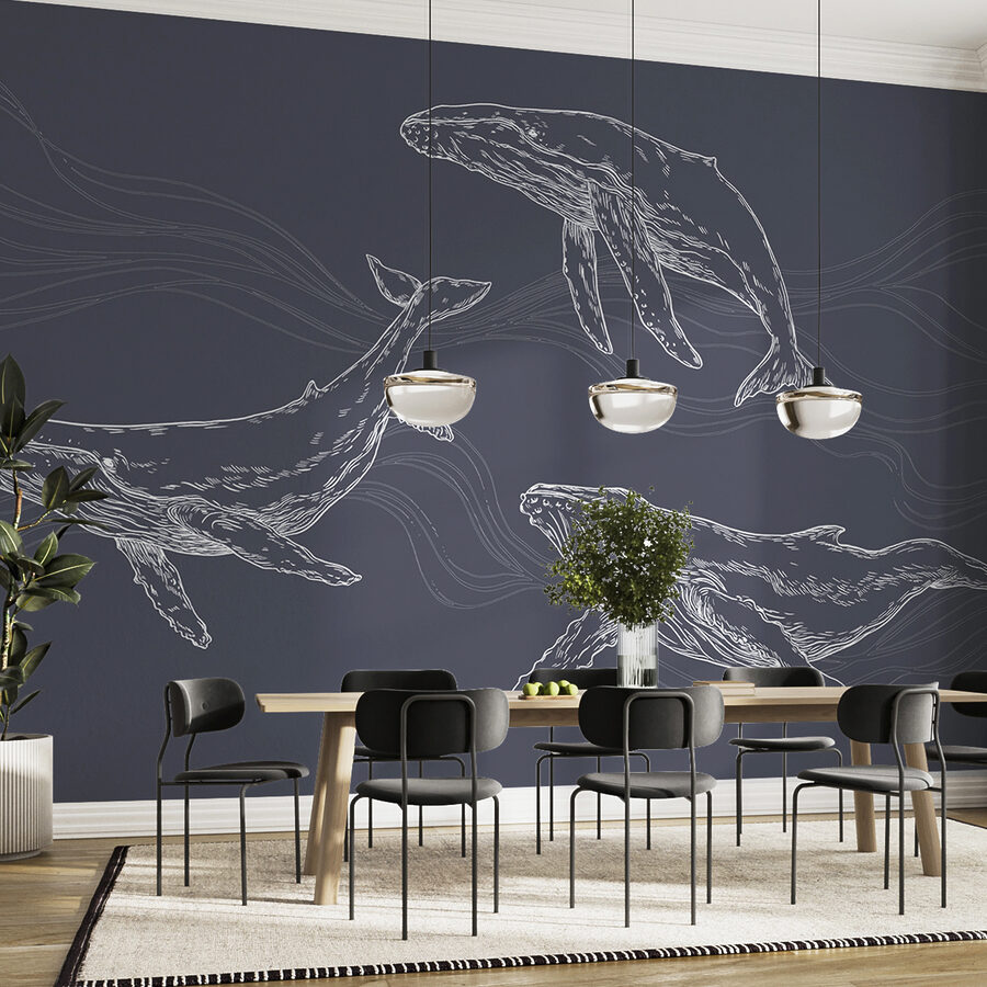Stellen Sie sich vor, Sie betreten einen Raum und werden von einer majestätischen Gruppe von Walen begrüßt, die anmutig über Ihre Wand schwimmen. Das ist genau die Stimmung, die dieses Wandbild vermittelt – beruhigend und doch ein bisschen abenteuerlich. Ideal für jeden Raum, der ein wenig vom Zauber des Ozeans braucht. Denn Wale schwimmen nicht nur, sie gleiten auch. Dieses Wandbild fängt diese Eleganz ein und lässt Ihre Wände lebendig werden. Perfekt für ein Zimmer mit Strandthema oder einfach nur, um einen Hauch von Meer zu vermitteln, wo man es am wenigsten erwartet. Und diese sanften Linien und Wellen… ein wahrer Kunstgenuss! Tauchen Sie ein und lassen Sie diese wunderbaren Kreaturen Ihren Raum in eine Unterwasseroase verwandeln.