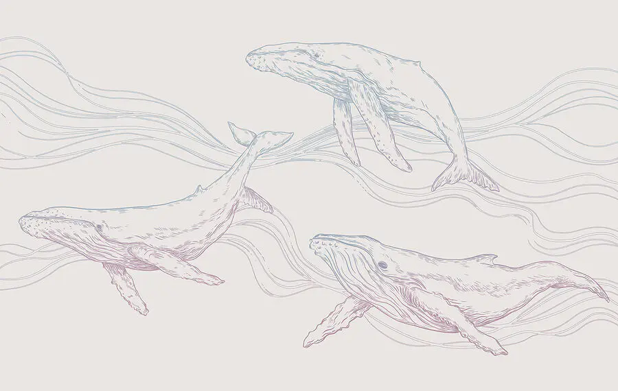 Verwandeln Sie jeden Raum in ein Meer mit dieser atemberaubenden Fototapete, die eine Gruppe von Walen zeigt, die anmutig durch das Wasser schwimmen. Stellen Sie sich vor, Sie wachen mit der sanften, beruhigenden Präsenz dieser majestätischen Kreaturen auf, von denen jede einzelne an die Schönheit des tiefen Blaus erinnert. Die weichen, fließenden Linien und die Pastelltöne schaffen eine heitere Atmosphäre – perfekt für ein gemütliches Wohnzimmer oder einen beruhigenden Rückzugsort im Schlafzimmer. Es ist, als hätte man ein Stück Meer direkt zu Hause. Freunde werden die Kunstwerke bewundern, und wer würde sich nicht ein wenig entspannter fühlen, wenn er von den Giganten der Natur umgeben ist? Tauchen Sie ein in eine Welt, die die Wunder des Ozeans in Ihr tägliches Leben bringt.