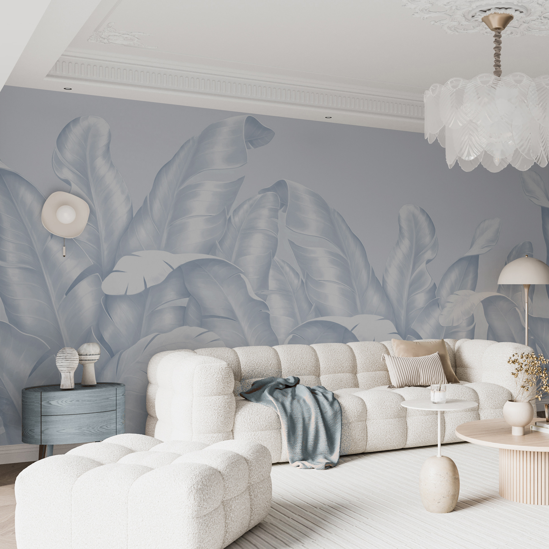 Verwandeln Sie jeden Raum mit diesen verträumten Wandbildern, die sanfte Kurven und fließende Blätter zeigen. Es ist, als ob Sie eine tropische Oase in Ihren Wohnraum einladen würden! Stellen Sie sich vor: ein gemütlicher Abend, sanftes Licht und diese atemberaubenden, ätherischen Blätter um Sie herum – die perfekte Kulisse zum Entspannen oder um Freunde zu unterhalten. Das subtile Design strahlt eine heitere Atmosphäre aus, in der man sich leicht entspannen kann. Außerdem passt es sowohl zu moderner als auch zu klassischer Einrichtung und lässt jeden in Ehrfurcht erstarren. Zeit, den Wänden eine erfrischende Veränderung zu verpassen!